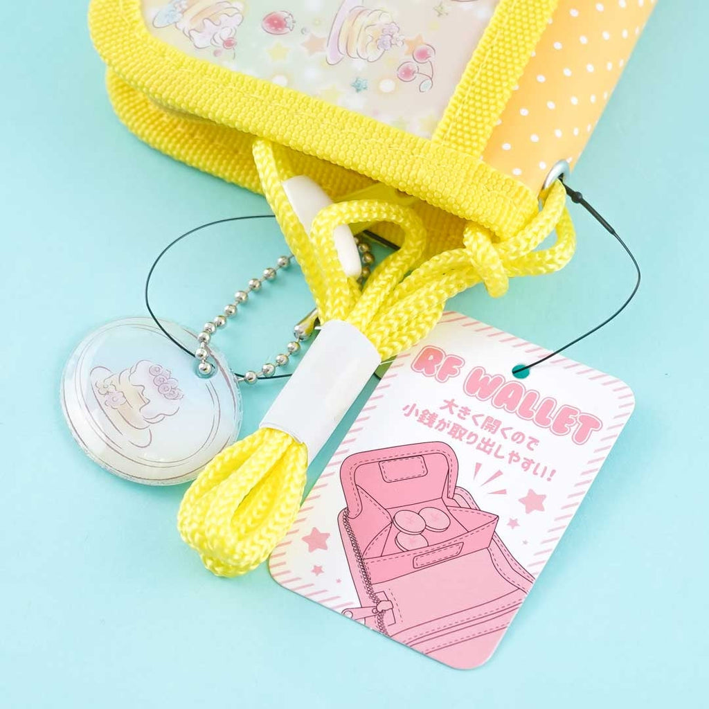 A kawaii bi-fold wallet featuring a print of Pompompurin with delicious cakes