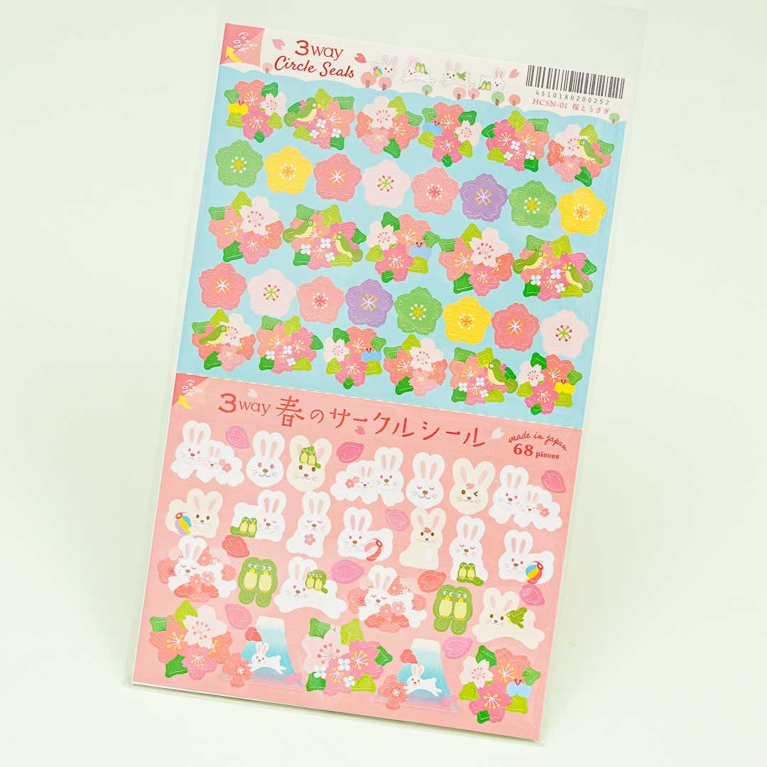 Have fun playing around with this kawaii sheet of stickers showcasing sakura flowers and rabbits! It can be used three different ways - you can cut at the perforated part so you can share it with your friends, you can peel off the entire sheet to place in your sticker notebook, or you can stack half-sheets in your notepad.