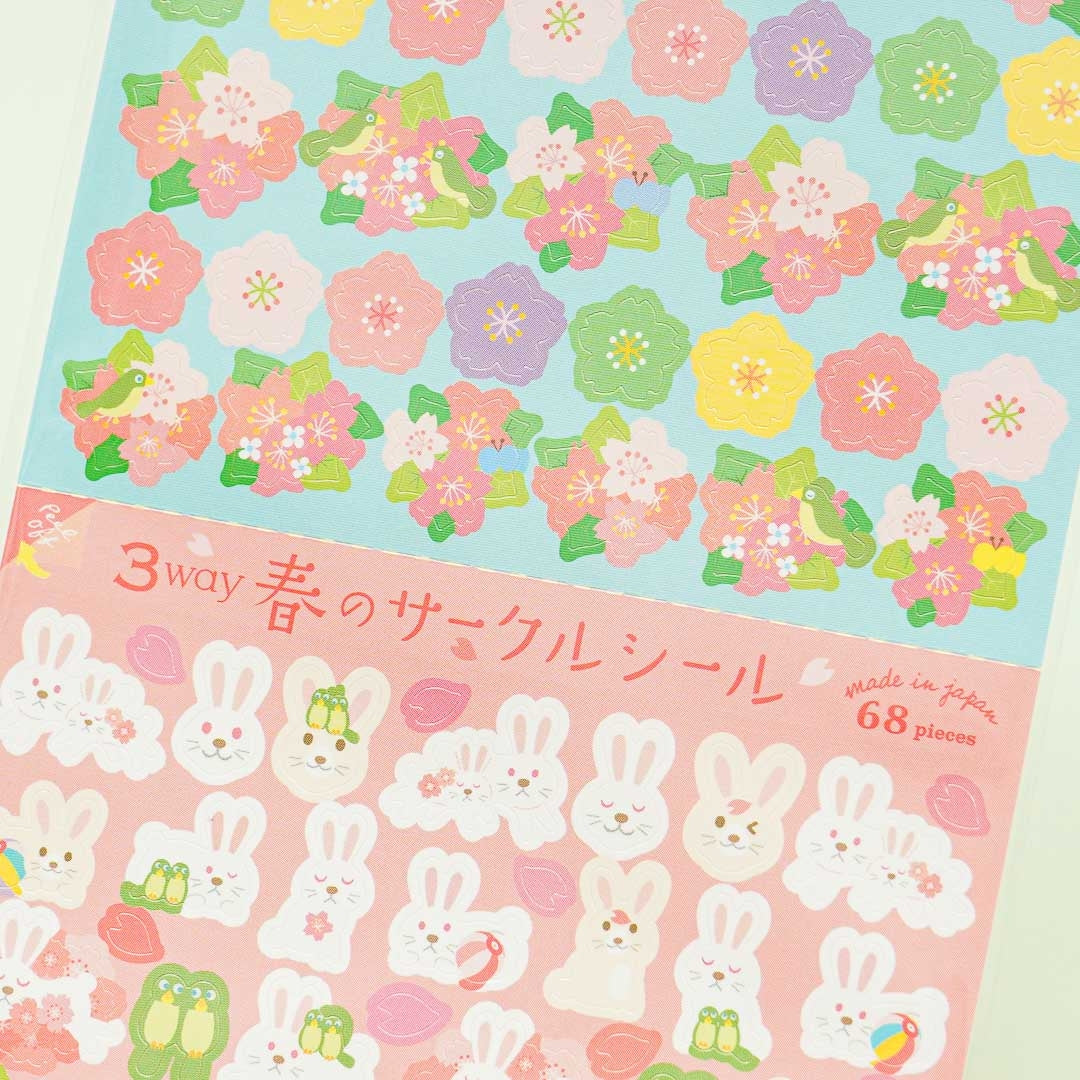 • A super kawaii sheet of stickers featuring rabbits and sakura flowers that can be used three different ways