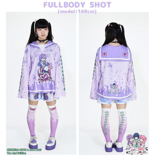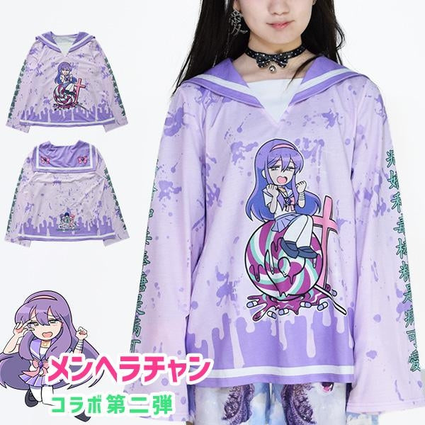 Kawaii-fy your outfit ensemble with this Harajuku-style shirt featuring Yumeka-chan from the YamiKawaii aesthetic trend! This super cute long-sleeved shirt has a fashionable sailor collar. It comes from a brand driven by a "No Borders" concept inspired by Takeshita-dori in Harajuku.