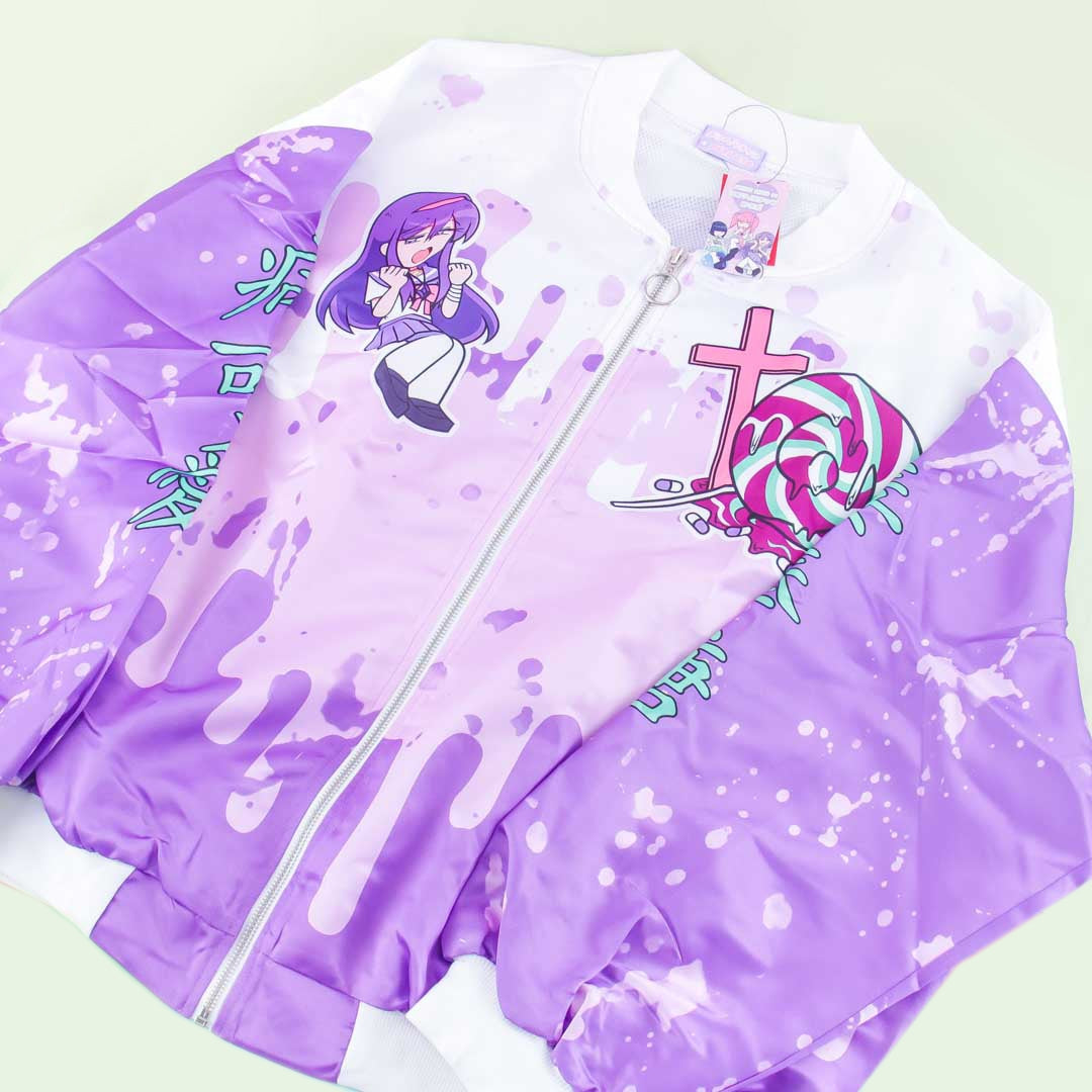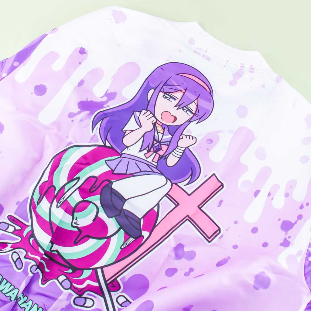 • A kawaii Harajuku-style bomber jacket illustrated with Yumekawa-chan from the Yamikawaii fashion trend
