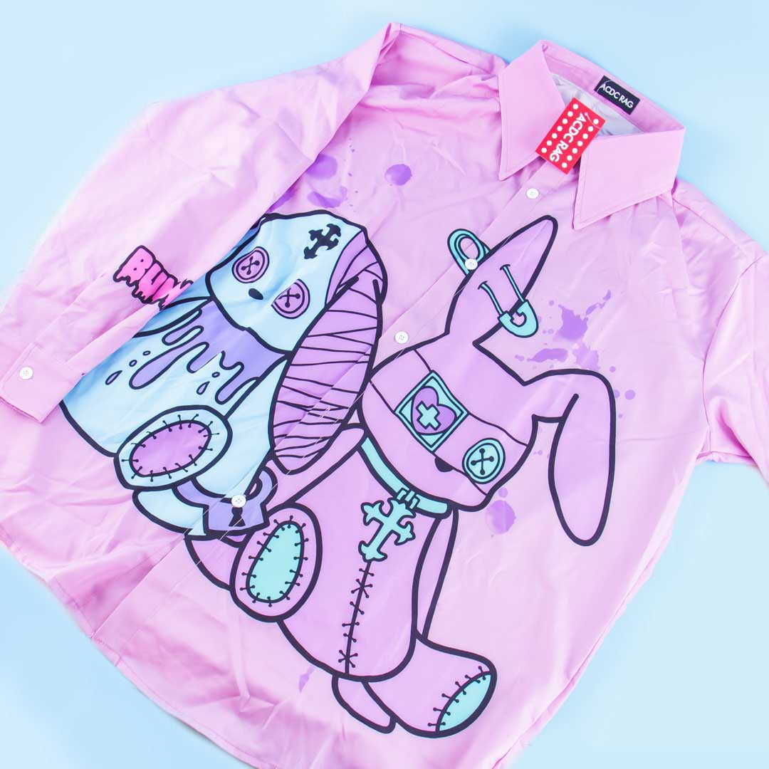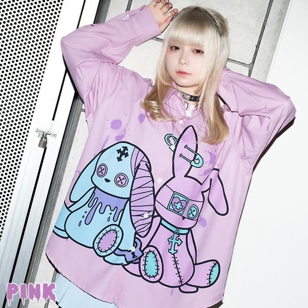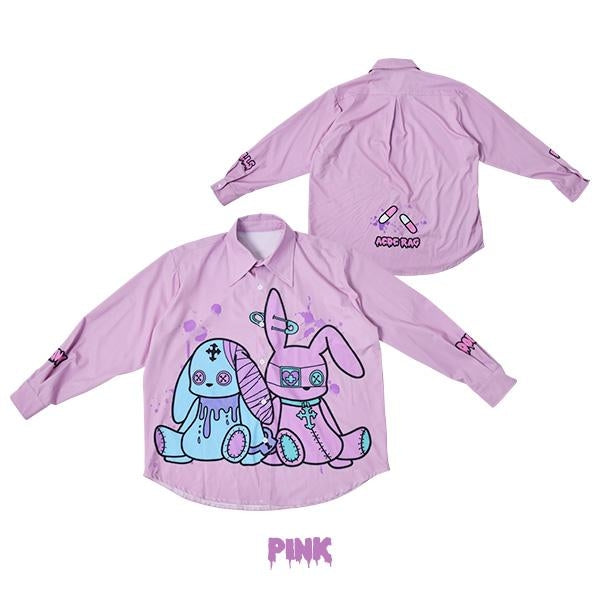 Flaunt your Harajuku style while wearing this super cute shirt from ACDC RAG! This iconic Japanese street brand originated from the fashionable streets of Harajuku. The kawaii long sleeve shirt features bunny dolls!