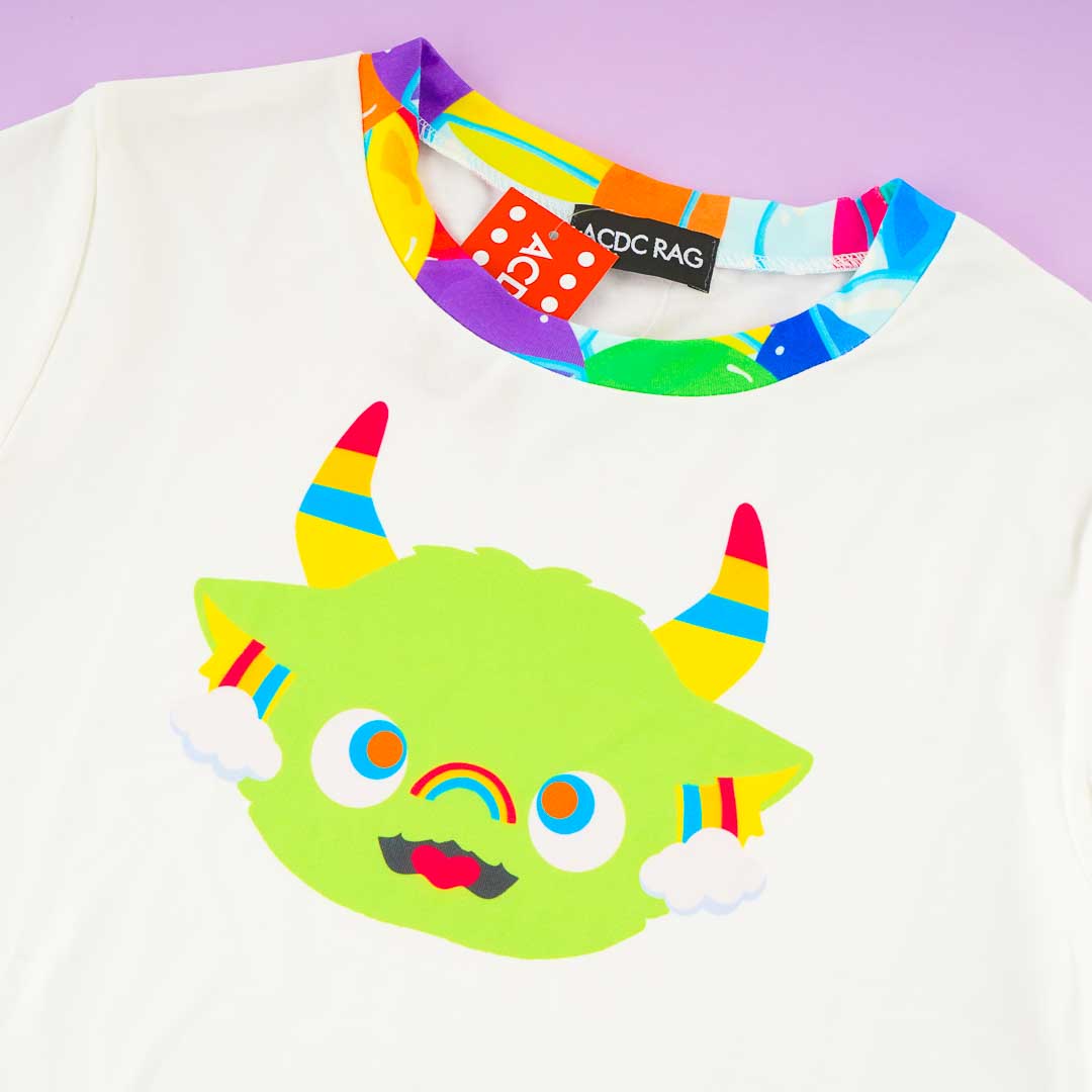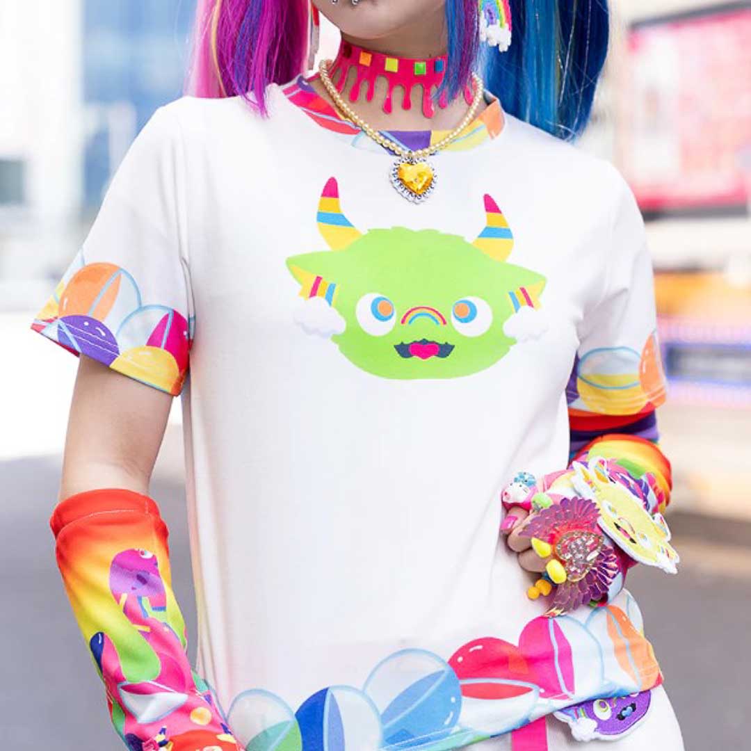 Kawaii-fy your look by wearing this super cute shirt that has a colorful monster print! It comes from the “Genie” collection that focuses on the Decora Kei style. ACDC RAG is a beloved Japanese clothing brand known for its fun Harajuku-inspired designs!