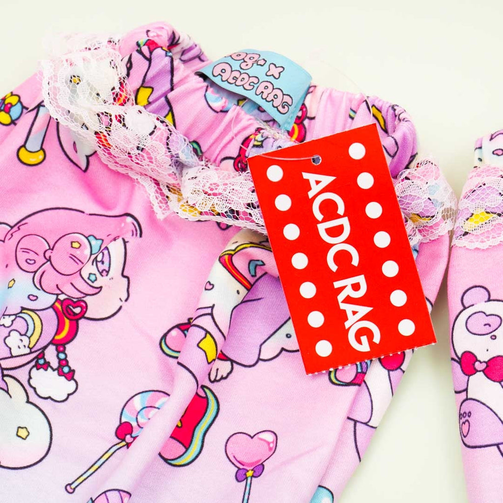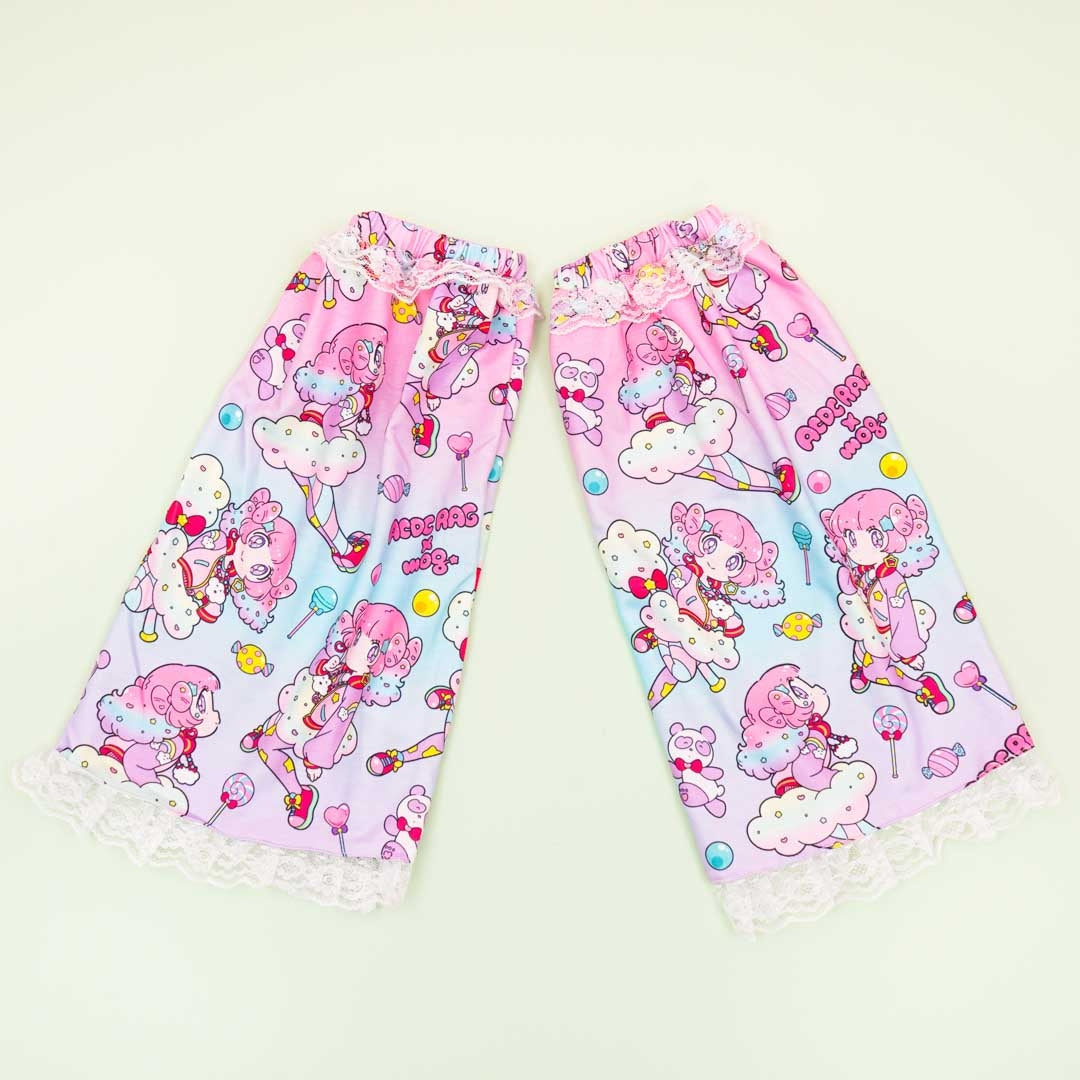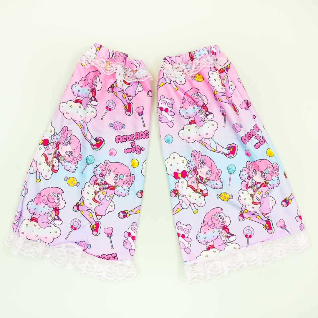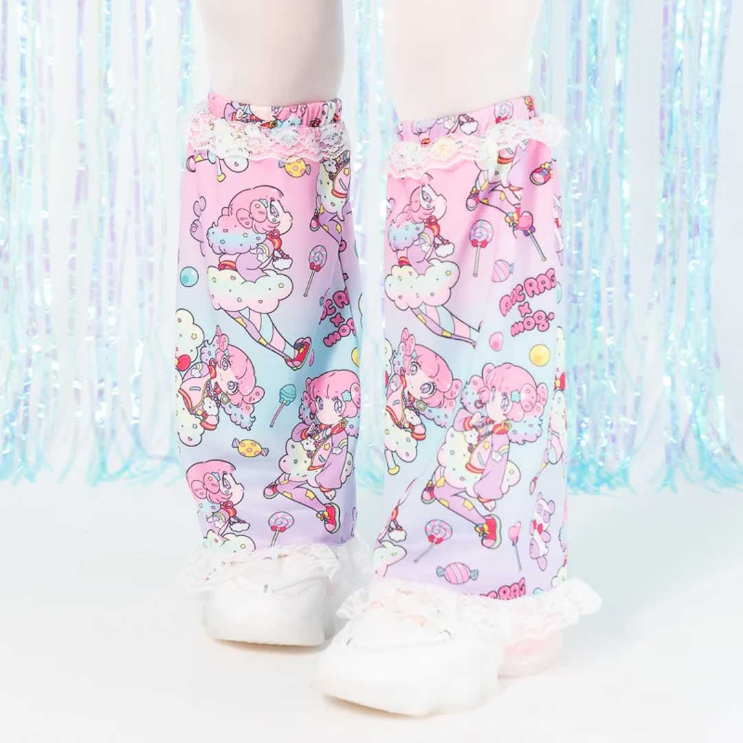 These pastel leg warmers look kawaii all over! Wear these to keep you warm during cold days. The super cute pair comes from the collab of ACDC RAG with a Japanese illustrator named “mog.” Each warmer has prints of pastel animé girl “Fuwa-chan” all over and white lace trimmings.