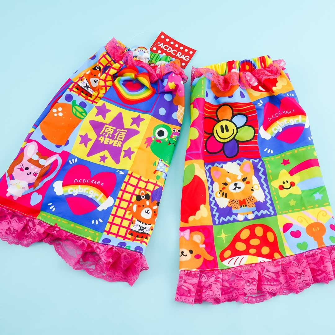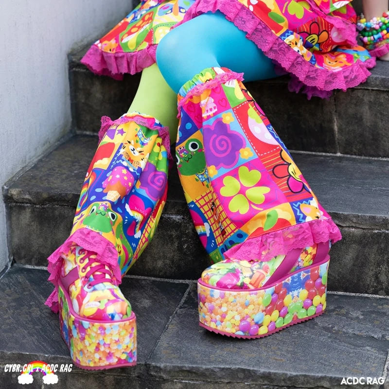 • A super cute pair of leg warmers with colorful prints inspired by Harajuku culture