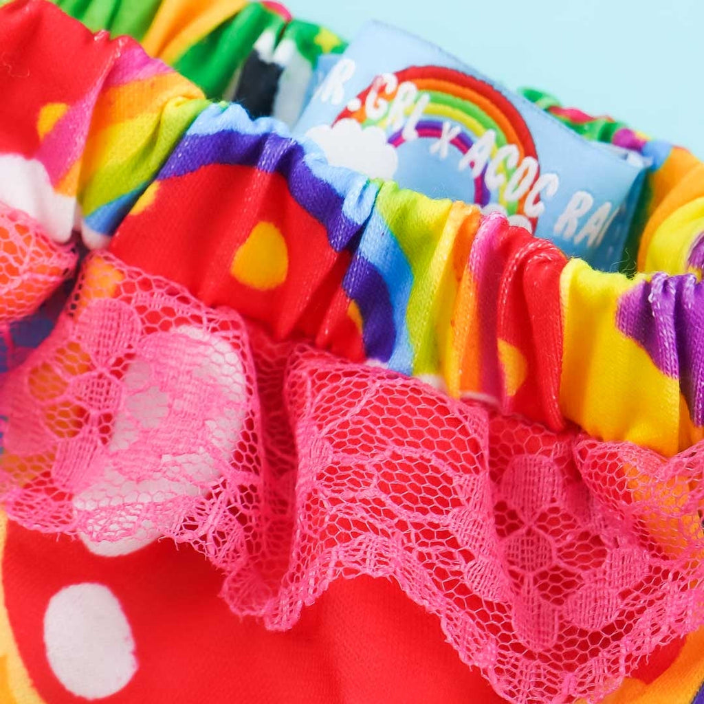 Keep yourself warm when walking outdoors during the cold season with this pair of kawaii leg warmers! These are decorated with ultra colorful doodles created by visual artist “Cybr.grl” for ACDC RAG! The famous Japanese clothing brand is known for its unique take on Harajuku fashion! These cute leg warmers made of soft polyester also come with pink lace trim.