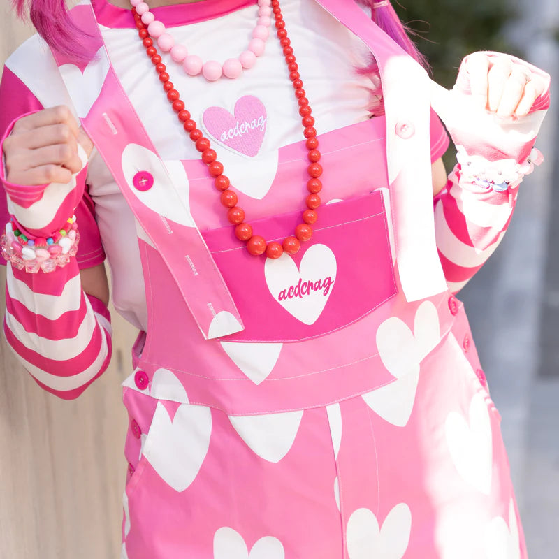 Channel your past Y2K or 2000s era style by donning this pair of super cute overalls filled with lots of hearts! This Harajuku-inspired brand got its inspiration from the colorful street of Takeshita. The colorful overalls are made of super-soft polyester, have adjustable shoulder straps with buttons, two back pockets, and one hidden side pocket.