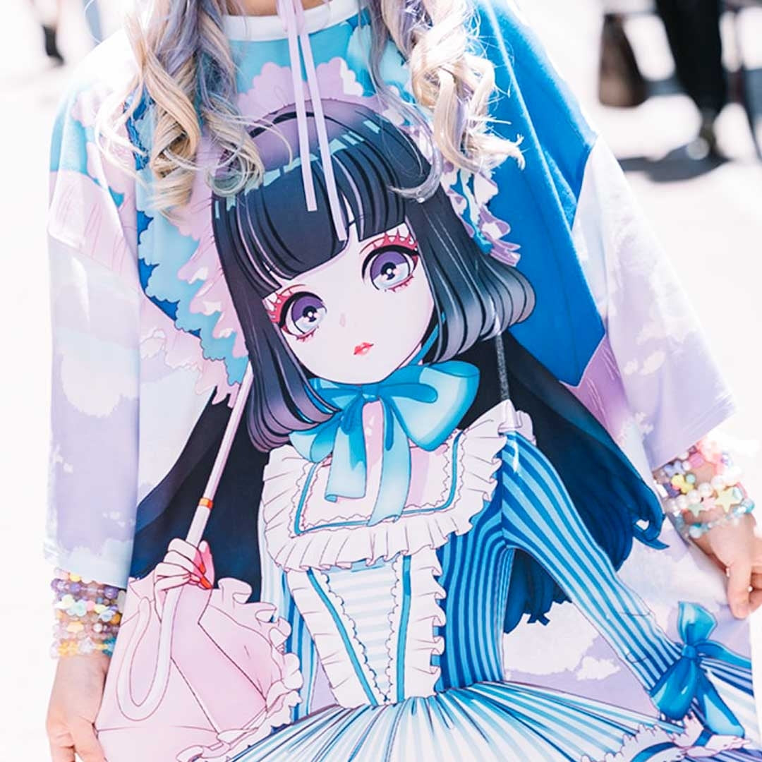 A kawaii oversized tee with an illustration of a Classic Lolita character