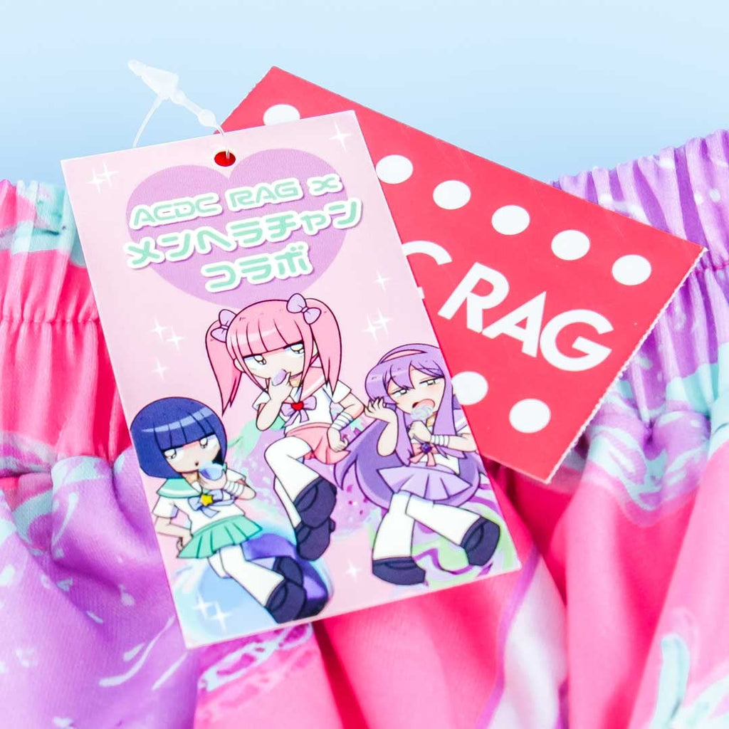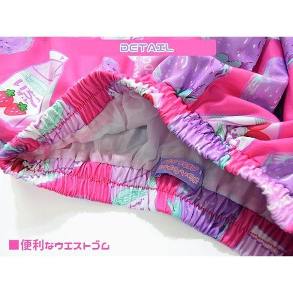 Add a touch of Harajuku fashion to your entire outfit ensemble with this super kawaii flare skirt featuring prints of milk cartons and strawberries! This Harajuku-style flare skirt comes from ACDC RAG's Menhara-chan clothing line inspired by Japan's Yamikawaii fashion trend. It has an elastic waist so it can stretch to fit your size!