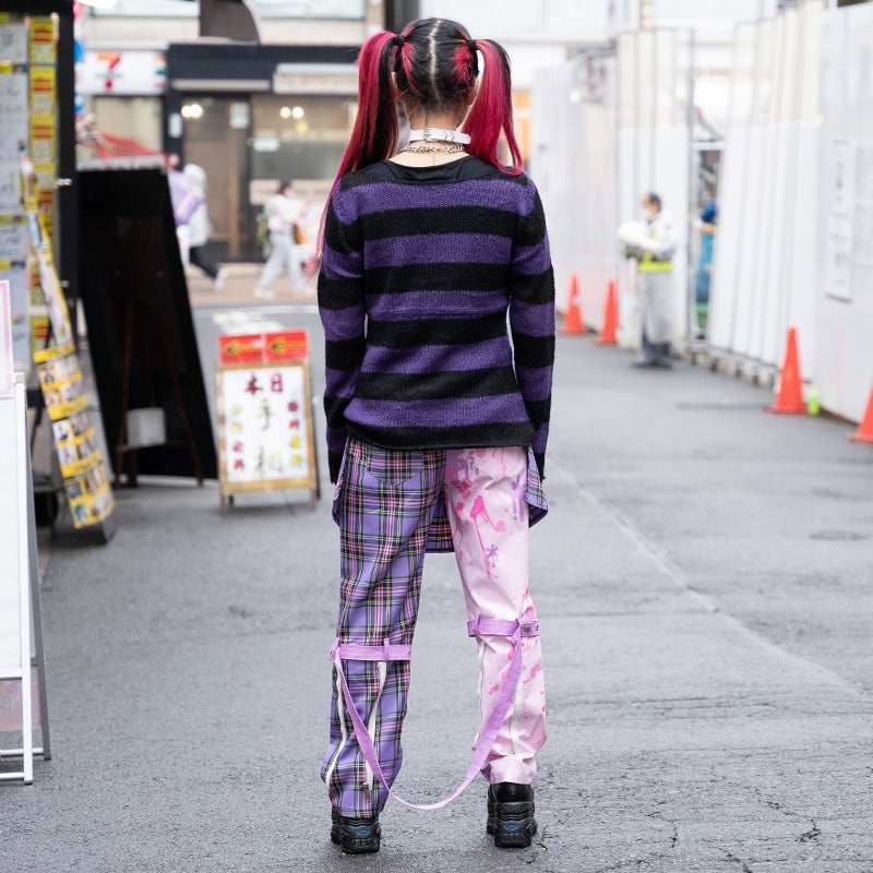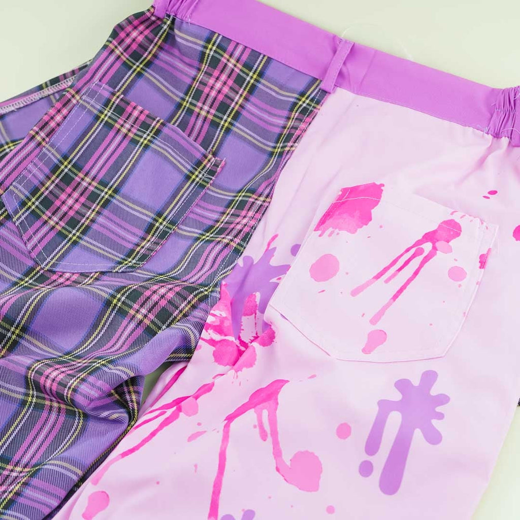 Level up your street style while still looking kawaii with this cute ACDC RAG and Gloomy Bear collab polyester trousers! The famous Japanese clothing brand is known for its unique take on Harajuku fashion! One leg of the pants has prints of a bloody Guru-mi or Gloomy Bear which is created by Japanese artist, Mori Chack — while the other leg has a plaid pattern. It also comes with a removable apron and pink straps.