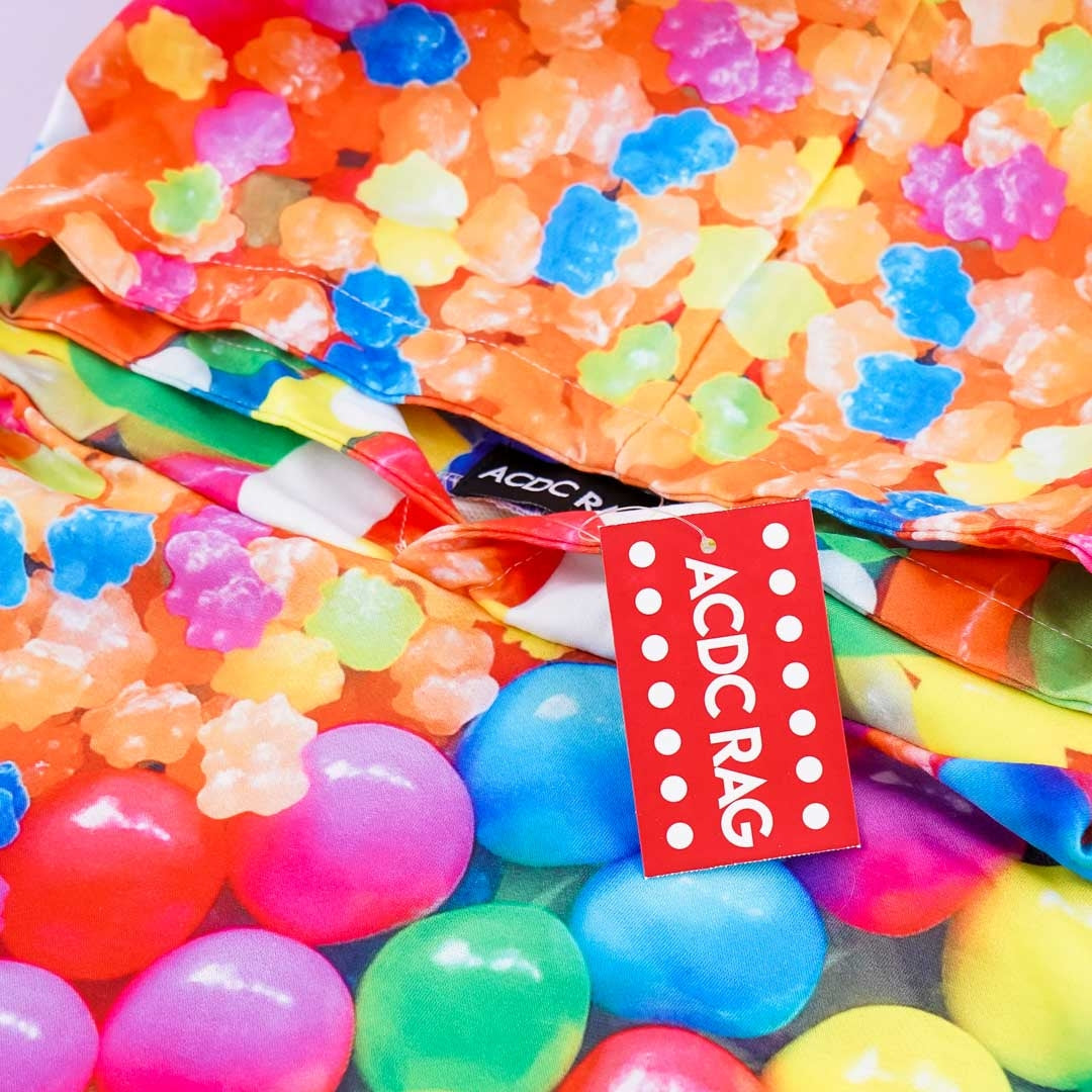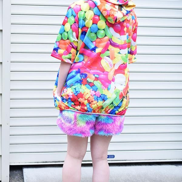 Complete your Decora Kei outfit with this ACDC RAG shirt! This famous brand from Harajuku gets its design inspirations from the fashions seen out and about in Takeshita Street! The cozy short-sleeved hoodie is made of super-soft material and is printed with lots of rainbow-colored jelly beans. It also has two side pockets.