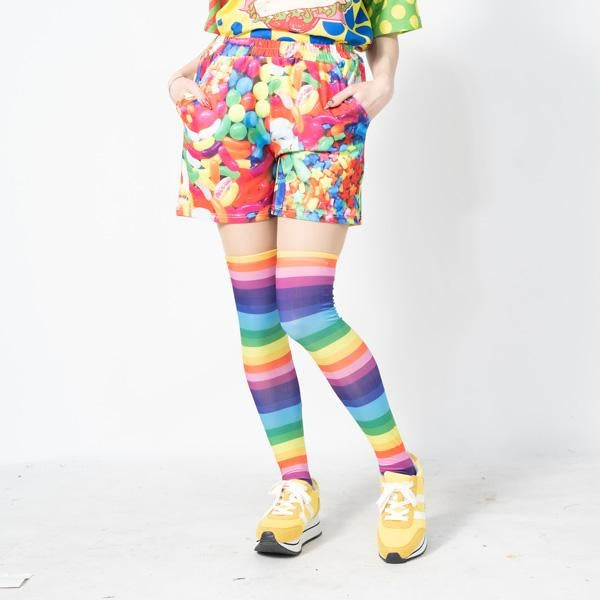 Dress up in Harajuku fashion by wearing this cute pair of pop art short pants covered in prints of bright candy! It'd go perfectly with your decora kei outfit of the day. This pair of shorts comes from a Japanese clothing brand driven by a unique "No Borders" concept inspired by Takeshita-dori in Harajuku, Japan.