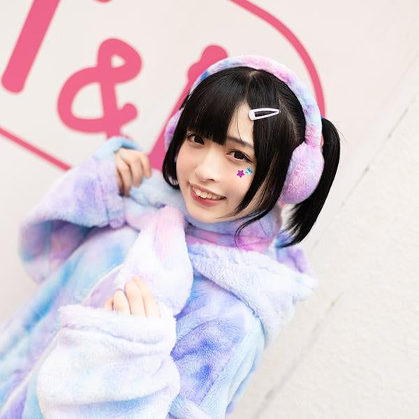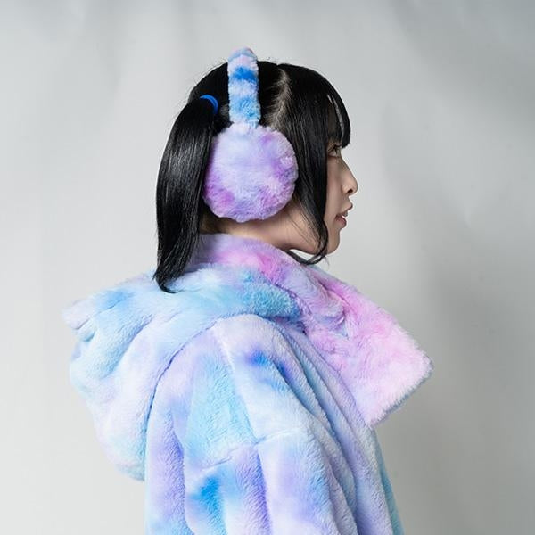 Kawaii-fy your winter outfit with this Harajuku-style scarf and earmuffs set! It features a purple cotton candy color. These clothing accessories come from a Japanese brand driven by a "No Borders" concept from the streets of Harajuku!