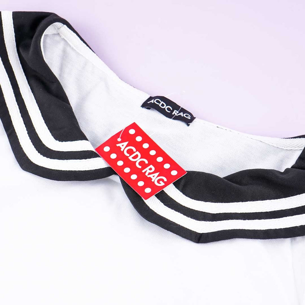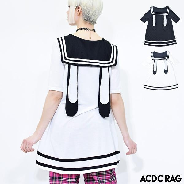 This kawaii sailor dress has usagi or bunny ears attached to the back of the collar! Have fun wearing this serafuku from ACDC RAG! The Harajuku-based clothing brand takes its inspiration from the colorful sceneries and street styles seen at Takeshita Street.
