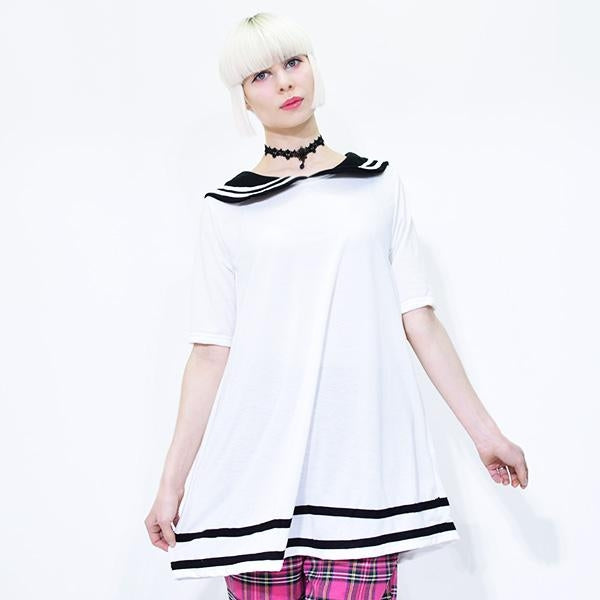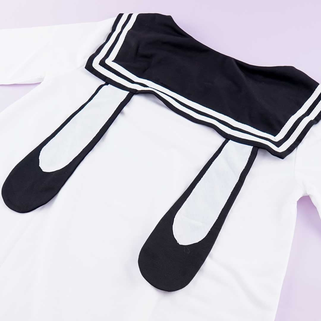 • A kawaii white sailor dress with a pair of rabbit ears attached on back of the dress collar
