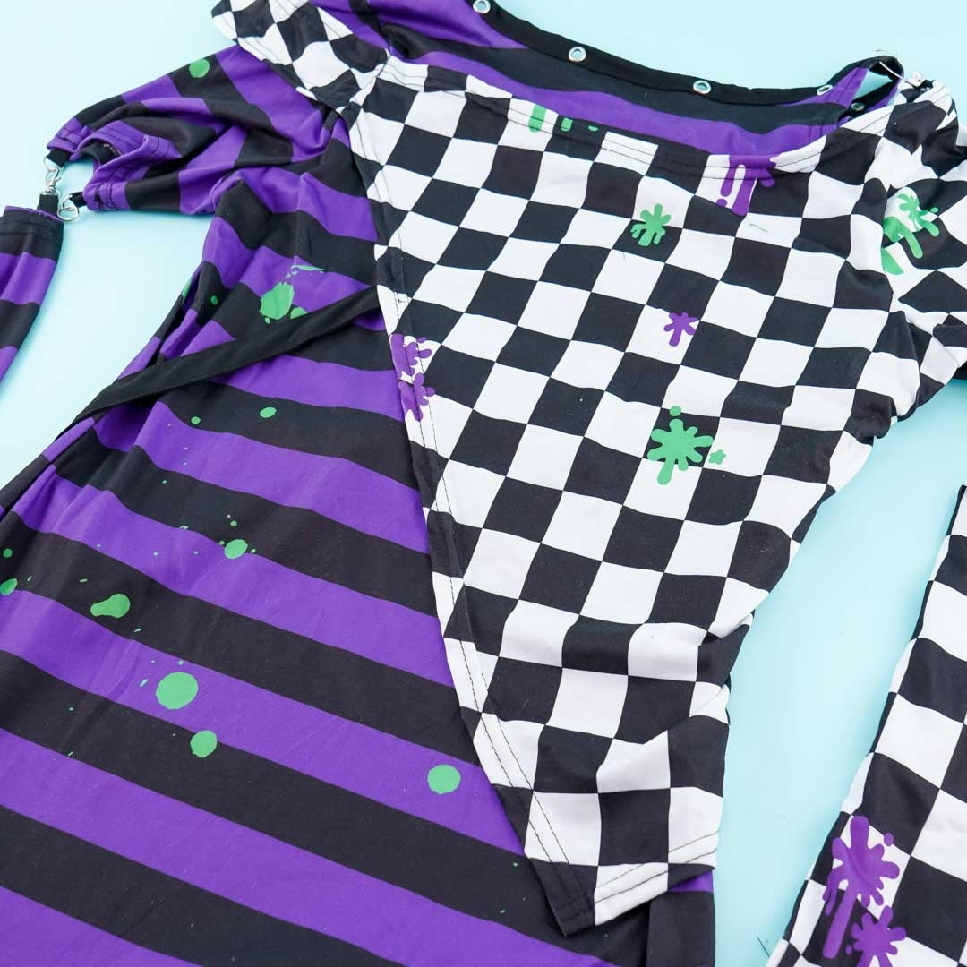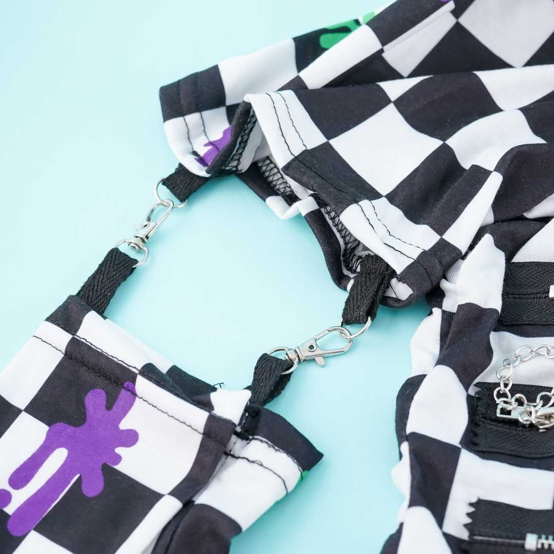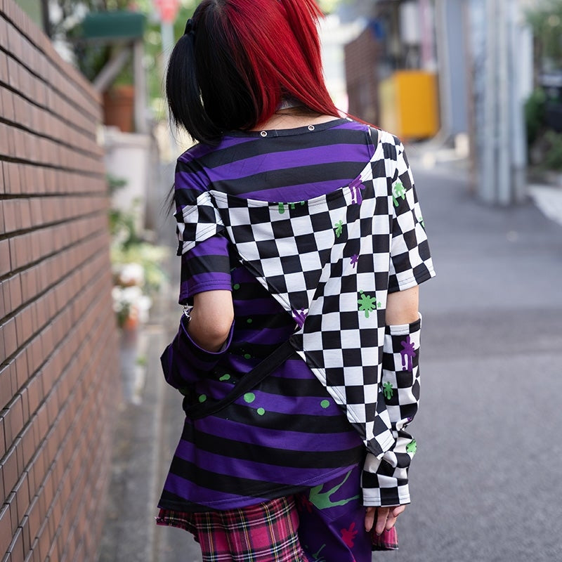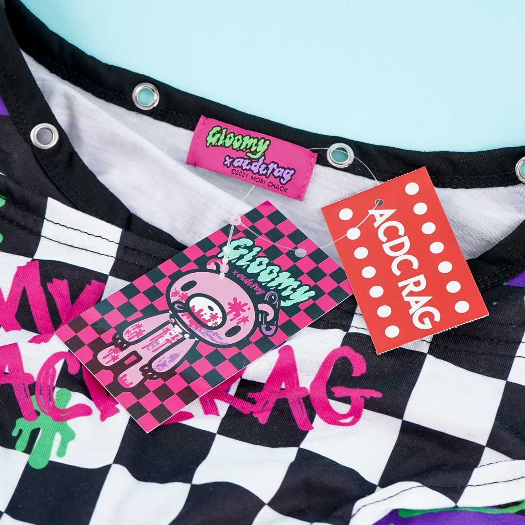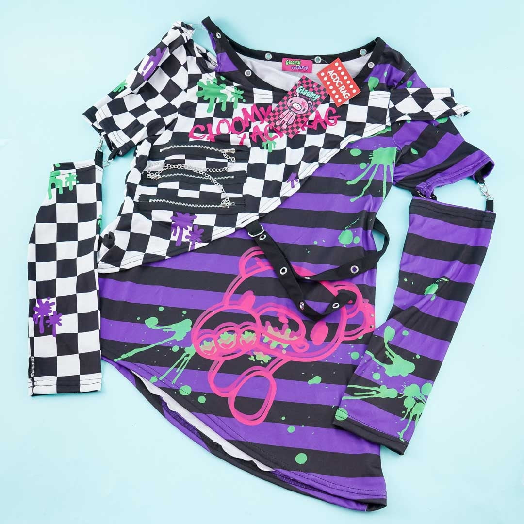 Put on this cute ACDC RAG x Gloomy Bear collab long-sleeved shirt to brighten up your mood! This Harajuku-inspired brand got its inspiration from the colorful Takeshita Dori. The colorful top comes with detachable sleeves, multiple chains and zippers; and has a combination of punk checkered and striped patterns. It also has a neon bloody illustration of Guru-mi the violent bear! You can have this polyester top cleaned through a washing machine.