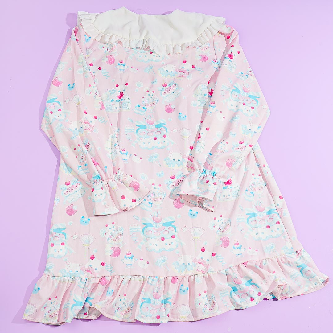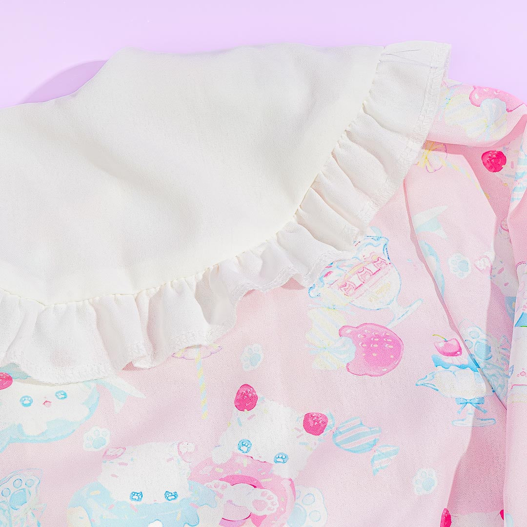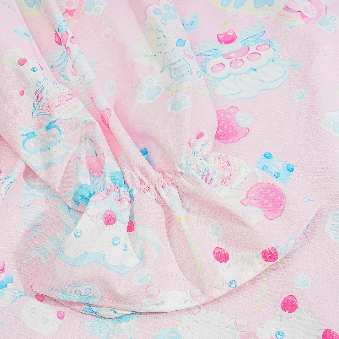 This super cute Harajuku-style pastel dress features prints of kawaii kittens and ribbon decors. It comes from a Japanese clothing brand inspired by a "No Borders" concept from Takeshita-dori in Harajuku, Japan. Add it to your kawaii wardrobe for the season!