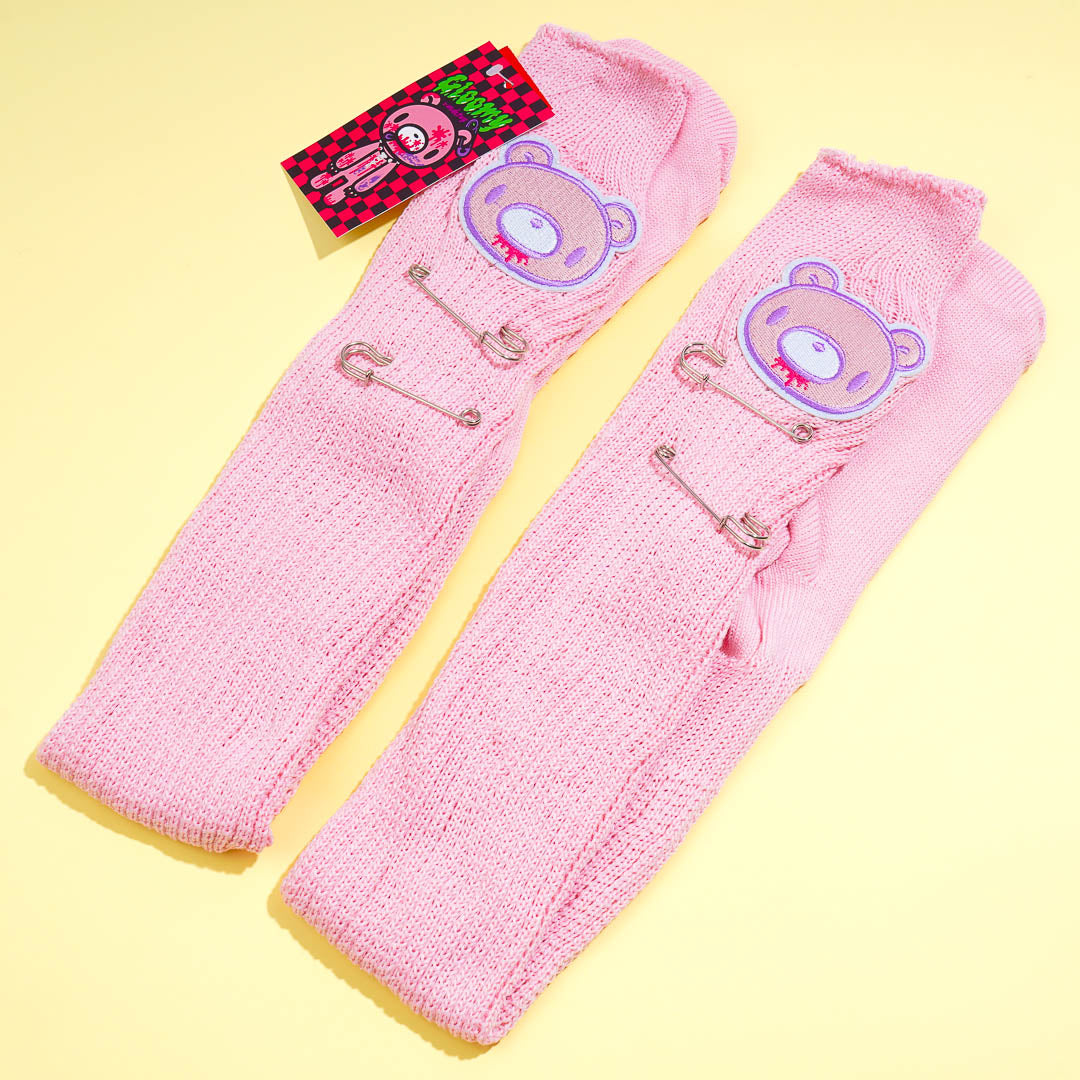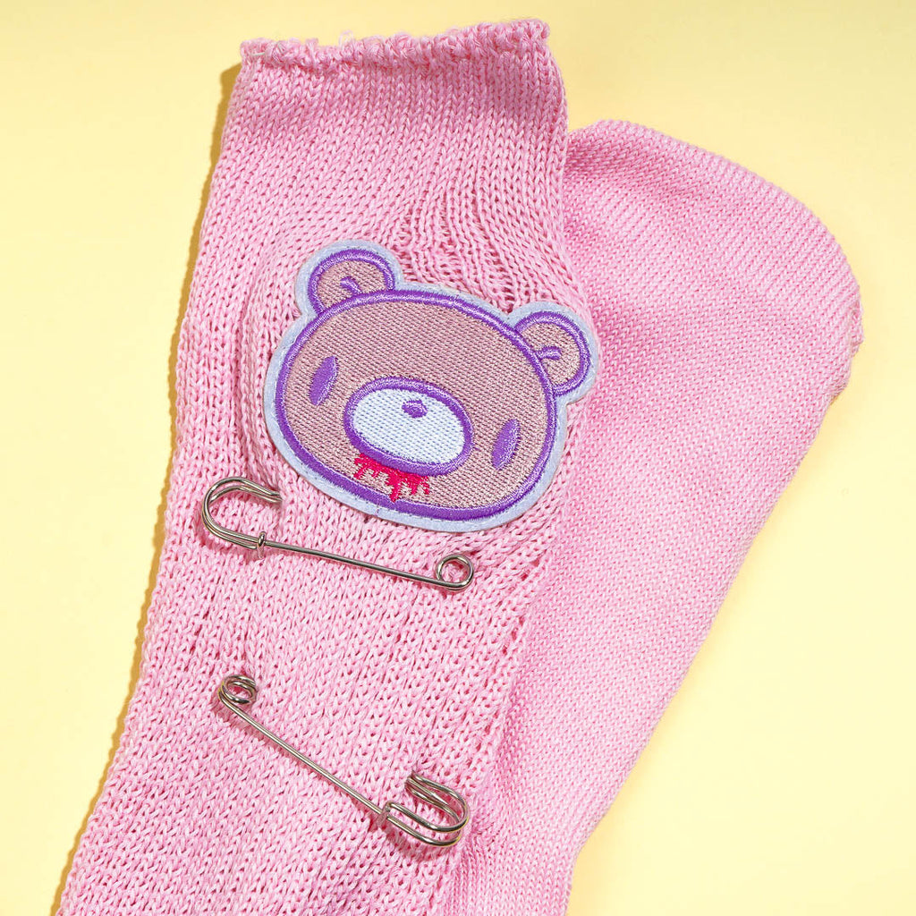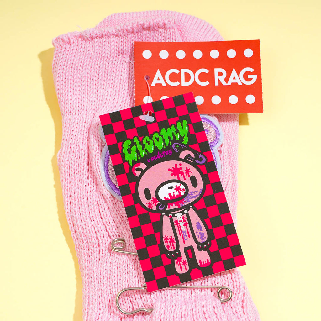 This super kawaii pair of loose socks comes from a collaboration between ACDC RAG and Gloomy Bear. Each sock has a cute loose design with safety pin decors and Gloomy Bear embroidery. Wear these pastel pink socks to complete your punk kawaii outfit of the day!