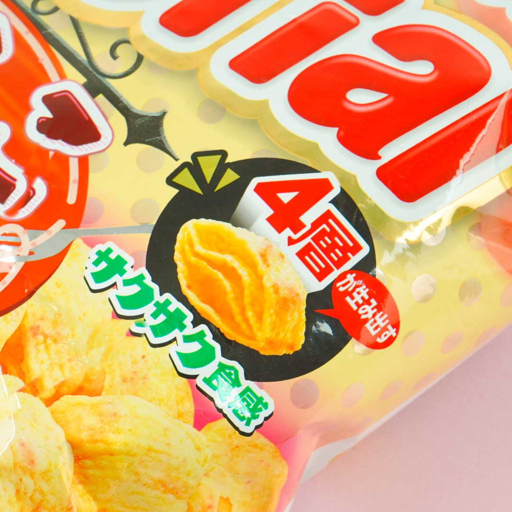 Enjoy munching on these four-layered corn snacks! Each piece has an interesting flavor combination of salty cod roe and rich cream.