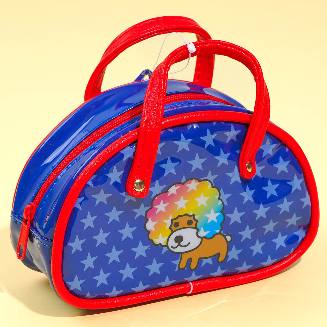 Store your small travel essentials inside this super cute Boston-style bag! It features prints of Afro Ken, the cool retro dog from San-X. This mini handbag is made of water-resistant PVC, so you can also bring it by the pool!