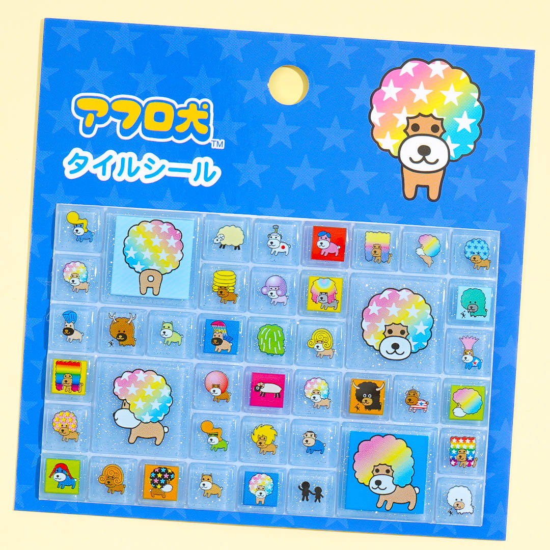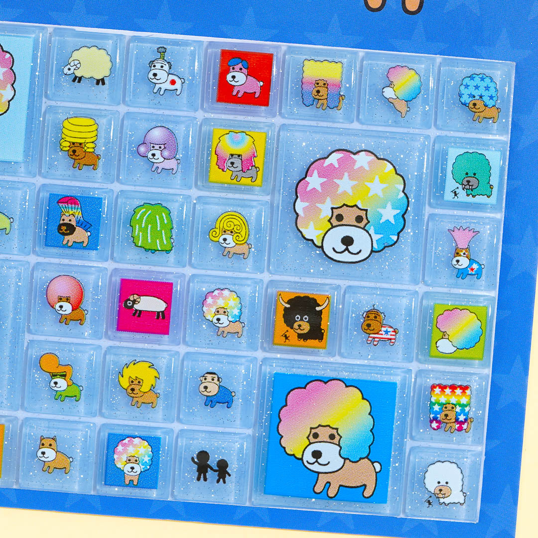 This sticker sheet is perfect for adding a kawaii retro touch to your gadgets! It features prints of Afro Ken, the colorful retro dog from San-X. You can use the tile stickers individually or all at once! Just make sure to cut along the groove with scissors before use.