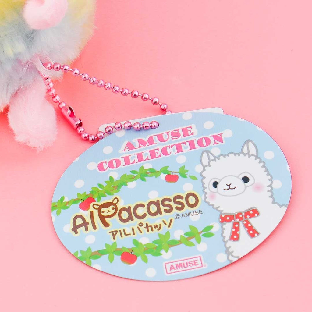 Bring this medium-sized alpaca plushie from the Alpacasso series anywhere with you. Attach it to your bag with its removable ball chain so you can cuddle its soft rainbow-colored fur anytime.