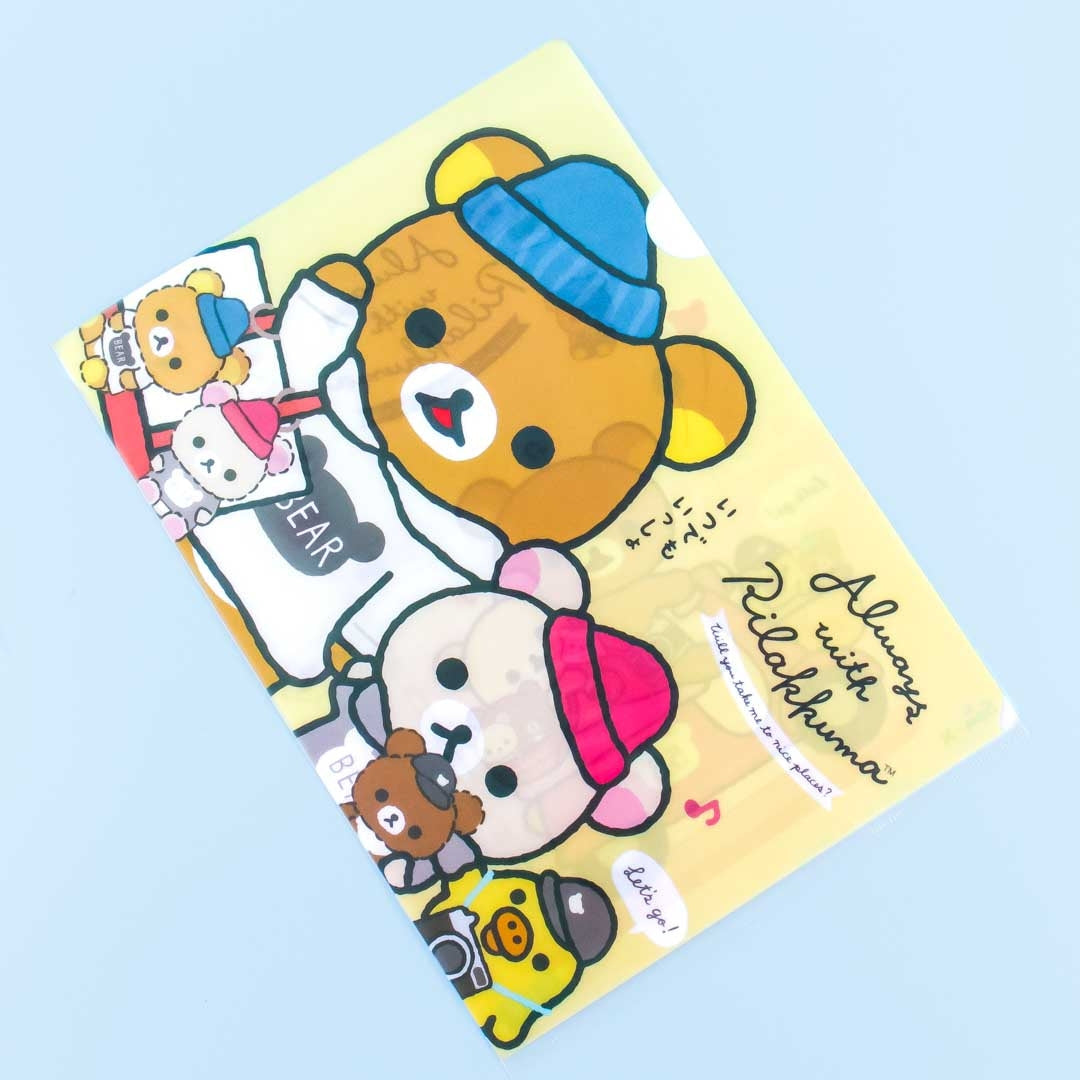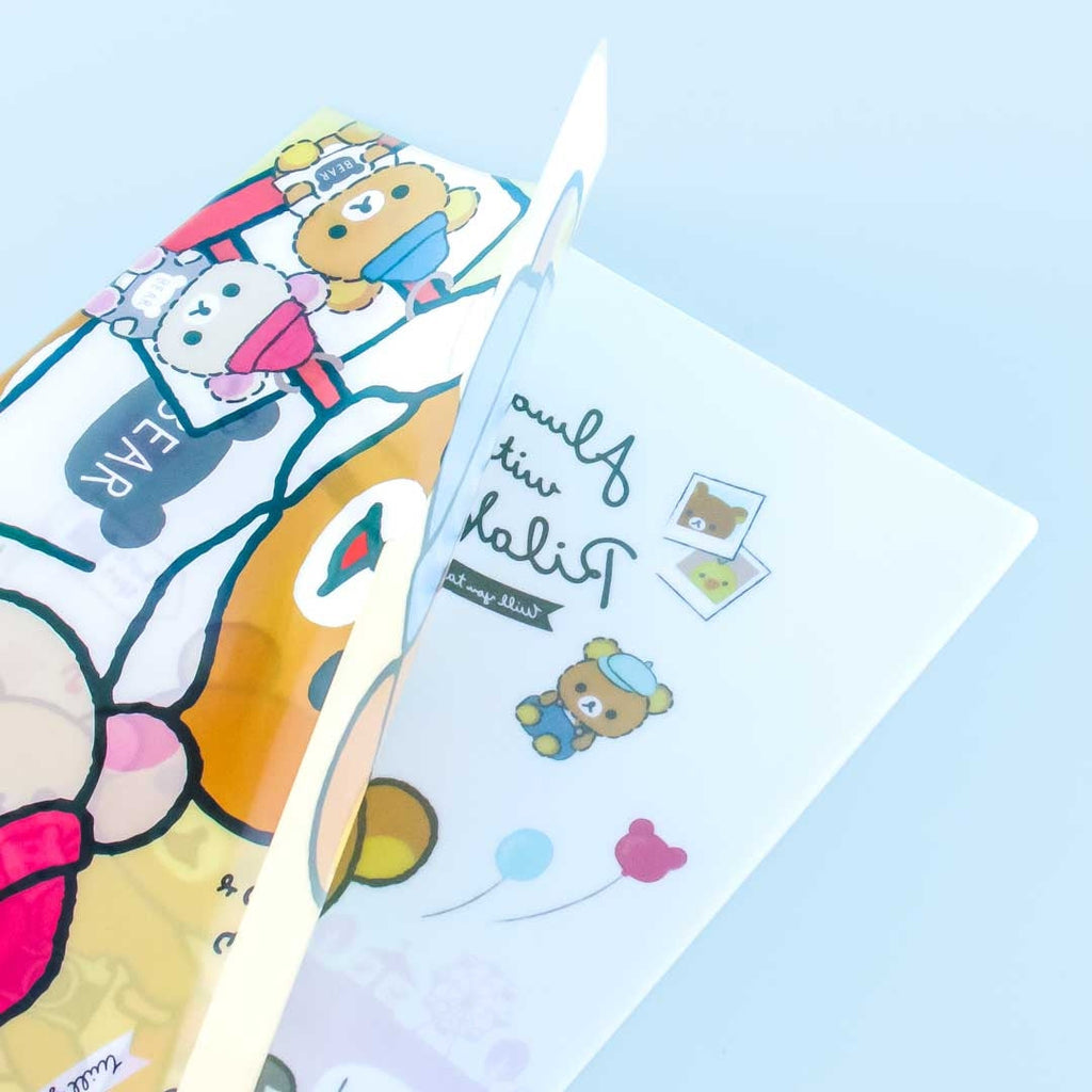 A kawaii file folder featuring Rilakkuma traveling with friends