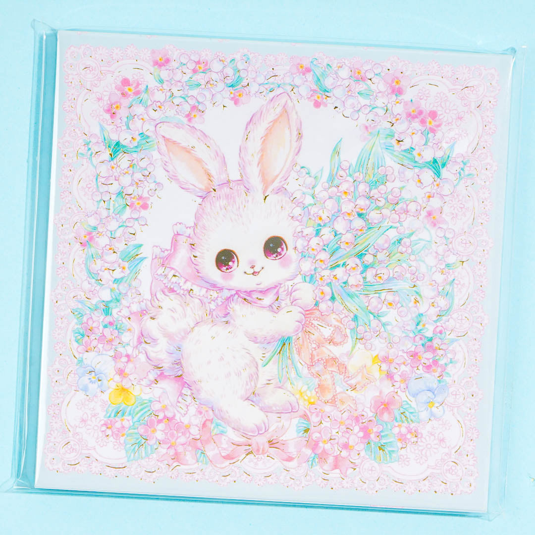 Write down important notes and reminders using this super cute memo pad! It's decorated with prints of a bunny enjoying its time playing with flowers. This memo pad comes from the Japanese artist Amenomori Fumika.