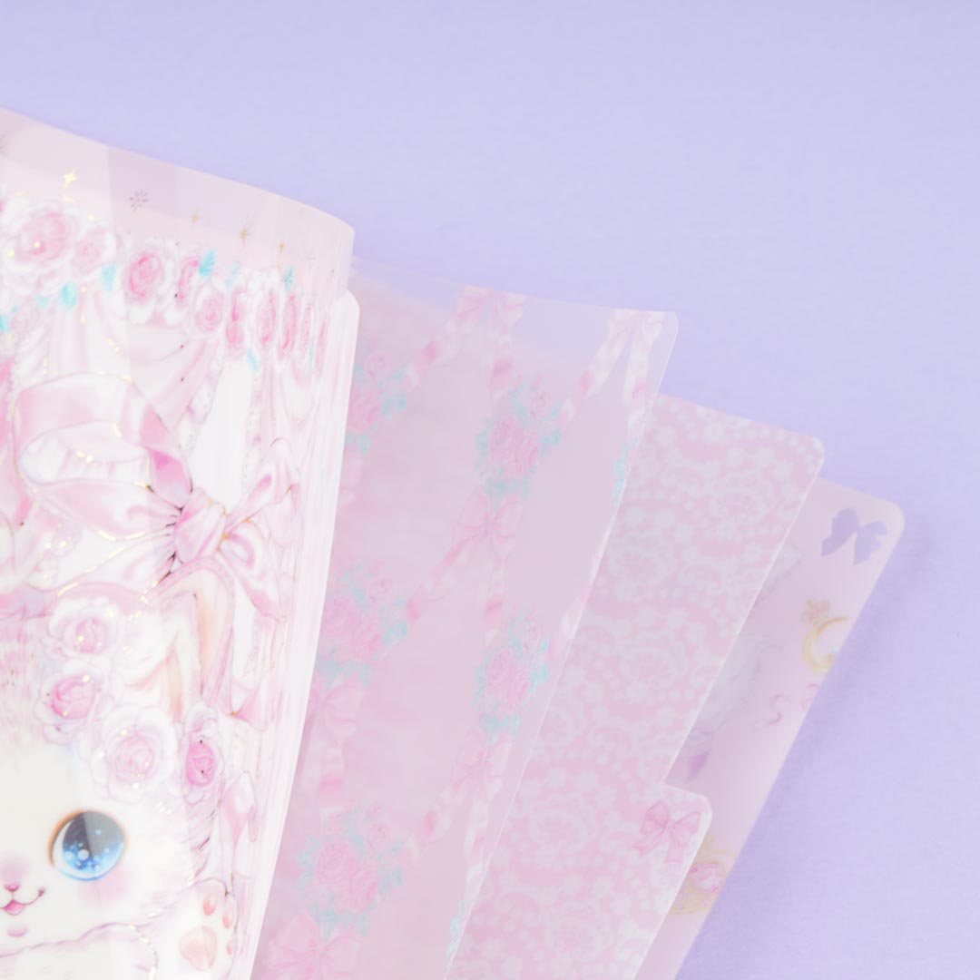 Keep your letters safe in this kawaii file folder! It features a cute illustration of a cat from Amenomori Fumika playing inside some ballet shoes with a bunch of roses. The index folder also has 3 clear pockets so it's super easy to organize!