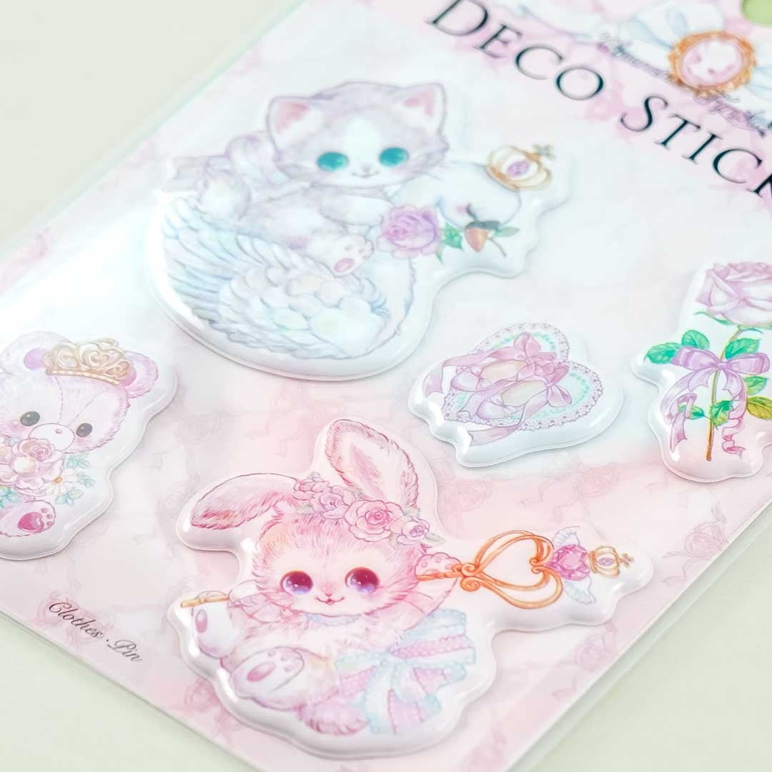A kawaii sheet of puffy stickers featuring cute cats, rabbits, and more