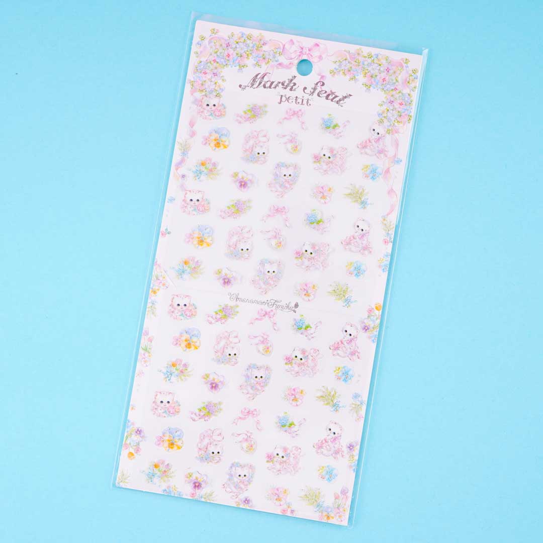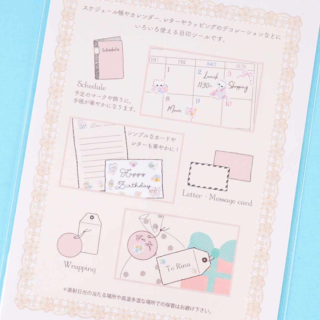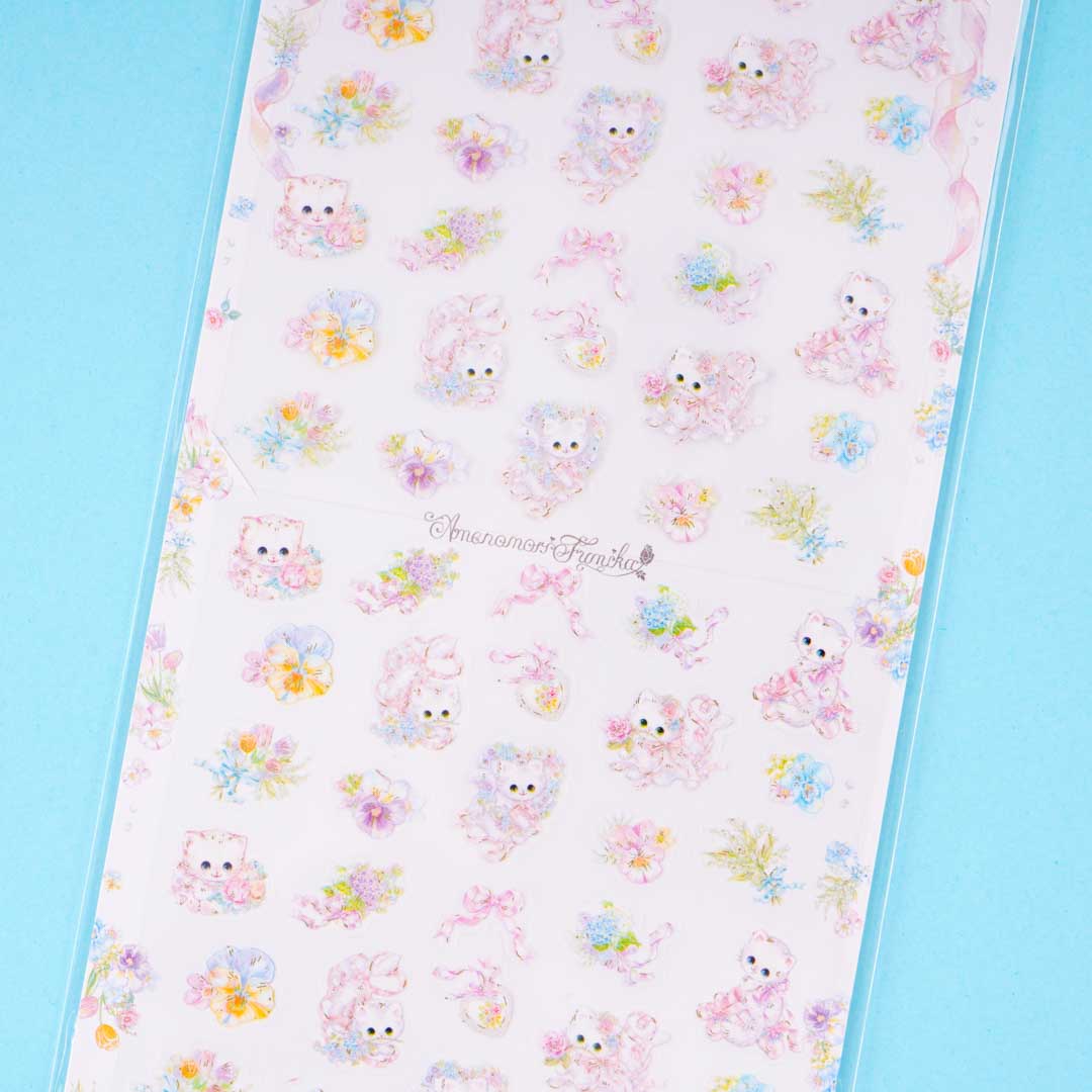 Have fun decorating your planner, journal, and notebooks with this sheet of cute stickers. It features super kawaii kittens playing with ribbons and flowers!