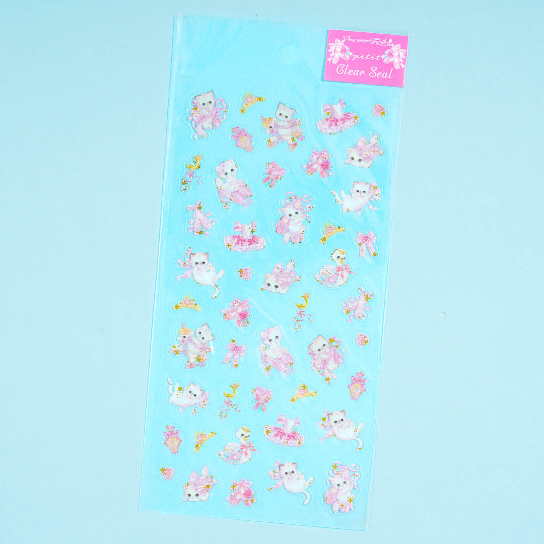 This super kawaii sheet of stickers showcase illustrations of cats and ribbons. It's made by the Japanese artist, Amenomori Fumika! Use these stickers to kawaii-fy your favorite notebook or your planner. Each piece has kawaii gold leaf accents.