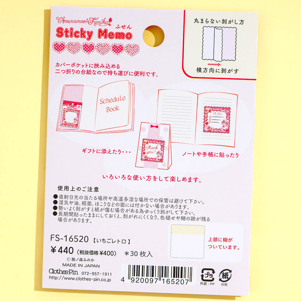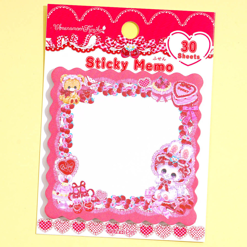 This super kawaii die-cut pad of sticky notes has a cute border illustrated by Japanese artist Amenomori Fumika! The design features a cute and fluffy bunny surrounded by lots of strawberries. Use these sticky notes to write down important reminders!