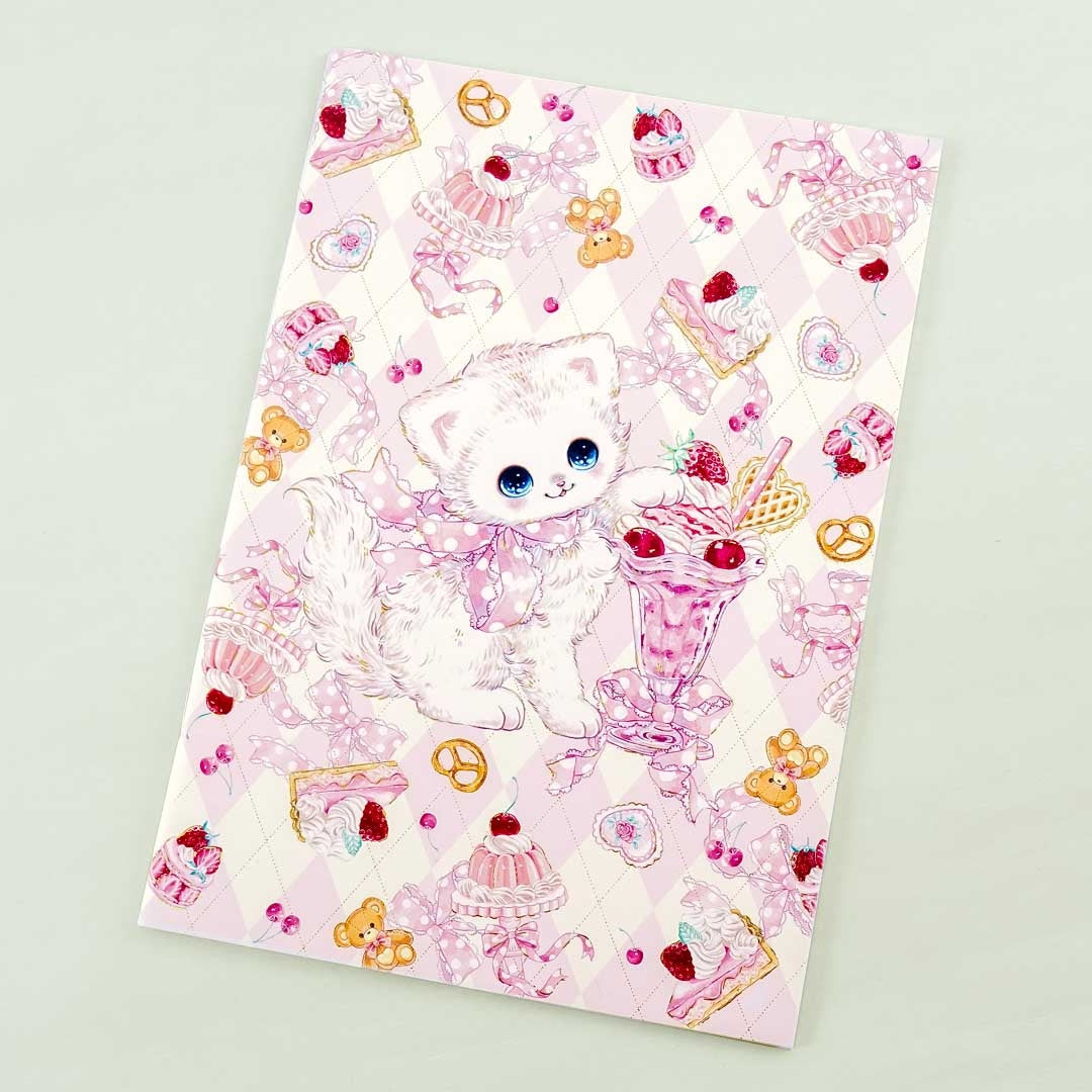 A super cute A5 notebook illustrated with kawaii cats and desserts