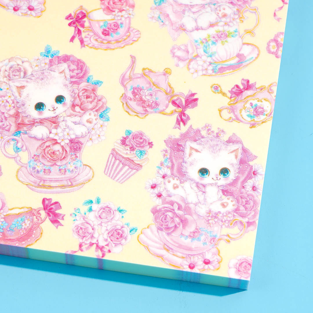 Write your important messages on the back of this super cute memo pad! It's covered in prints of Amenomori Fumika with tea time treats and beautiful roses.