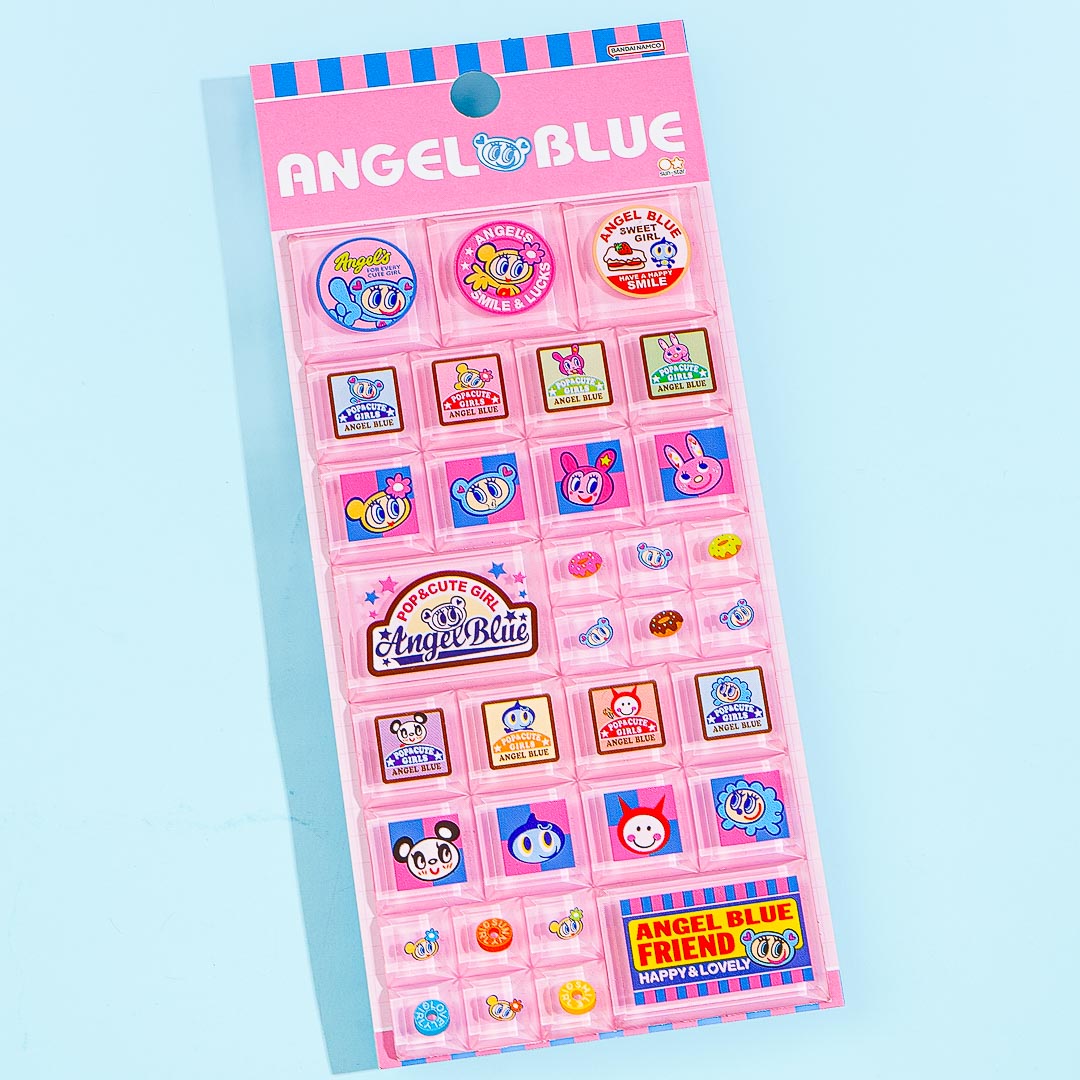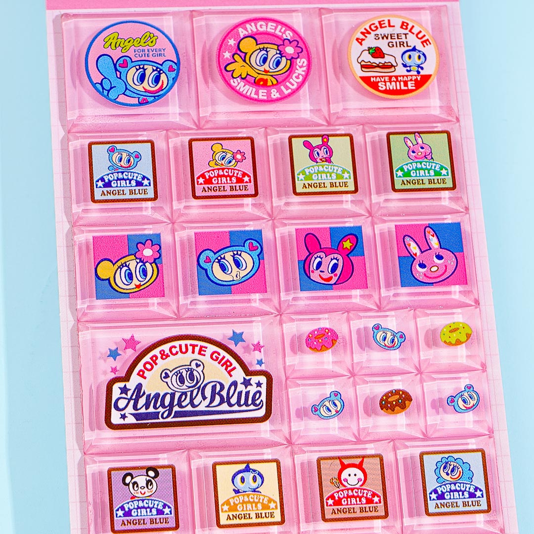 ANGEL BLUE is a Japanese fashion brand for teens that was a huge hit in the early 2000s. Spice up your diary cover by decorating it with these kawaii nostalgic tile stickers featuring ANGEL BLUE characters and iconography. Remember to use scissors to cut along the groove of these stickers.