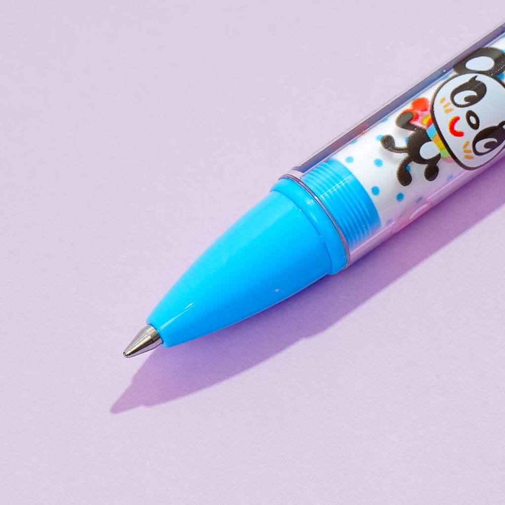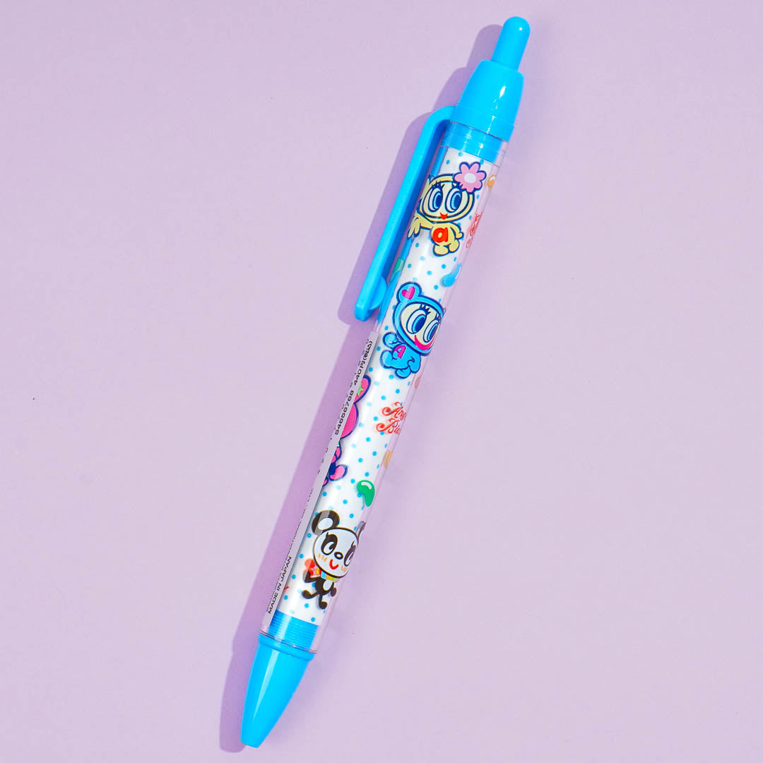 Have fun writing your notes with this super cute pen! It has a polka dot design featuring characters from the 90's Japanese brand, Angel Blue. This ballpoint pen has oil-based black ink and a two-layer structure where you can see the design inside a transparent outer tube.