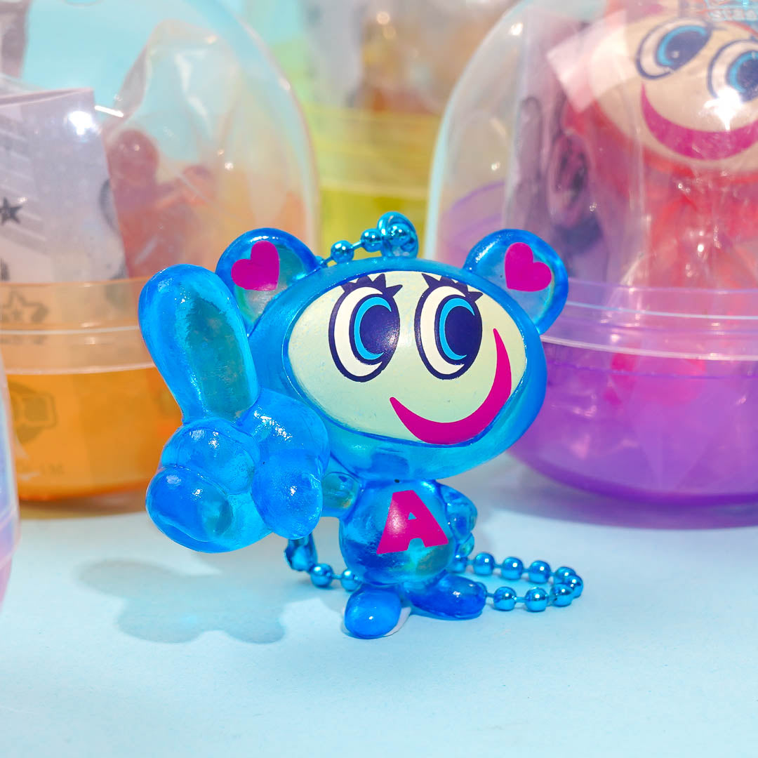 You can attach this kawaii transparent mascot charm to your favorite bag with its ball chain! It features the characters from the 90's brand Angel Blue. There are six different designs to collect, all in Gachapon capsules!