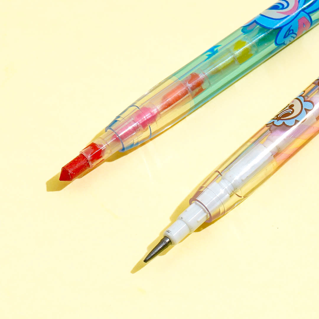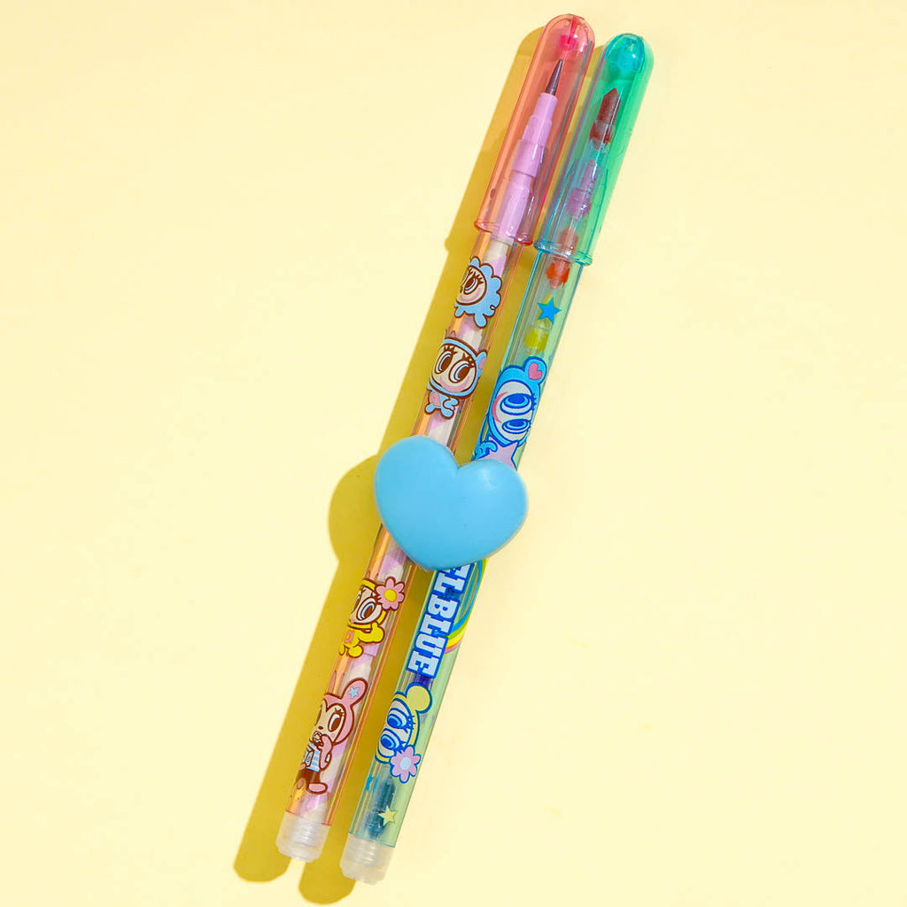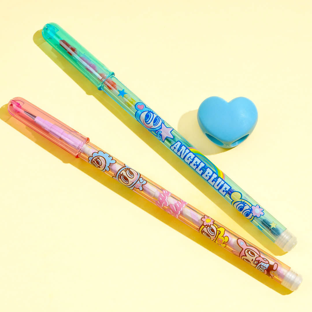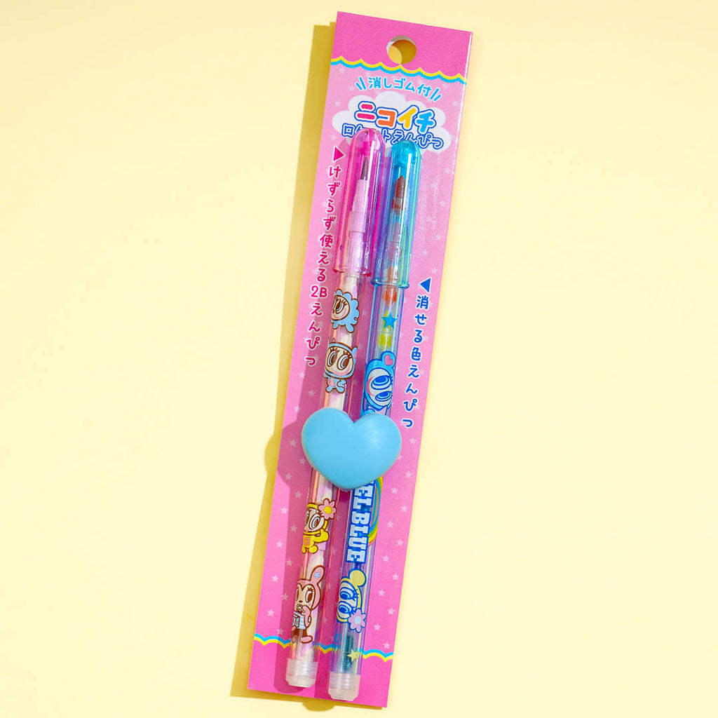 Have fun sketching and drawing with this super cute set of rocket pencils! It features prints of characters from the popular 2000s Japanese fashion brand, Angel Blue. This set includes a regular rocket pencil and a rocket colored pencil.