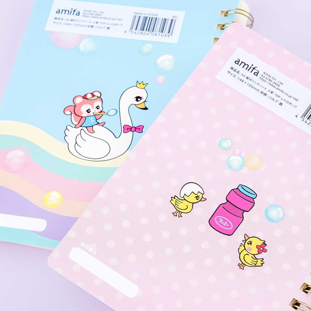 • A cute A6 size notebook featuring prints of animals playing with bubbles