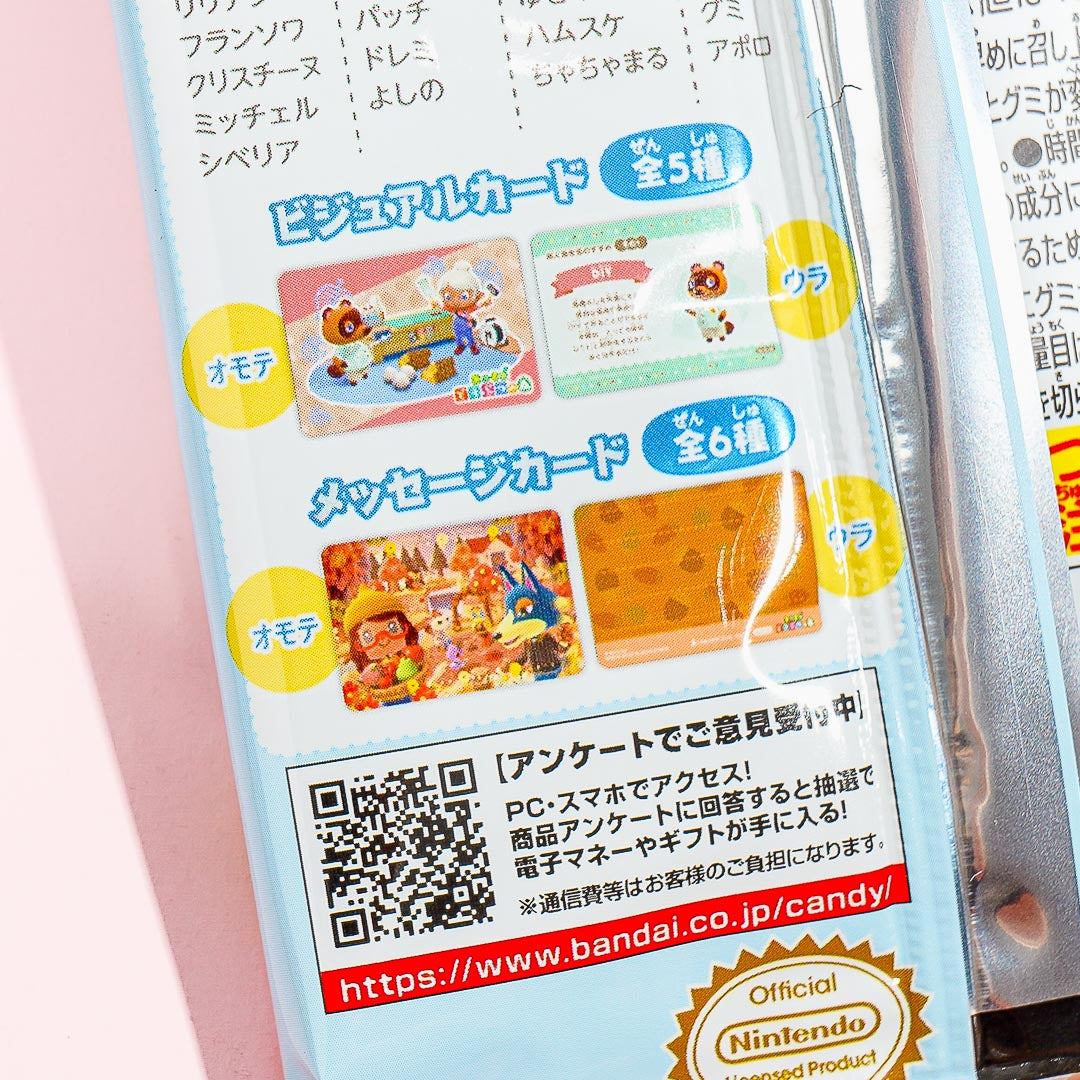 The well-loved Animal Crossing gummy pack is now available as a selection version! This pack of mixed fruit-flavored gummies comes with a collectible card featuring illustrations from the video game, "Animal Crossing: New Horizons." In this edition, you can collect character cards, scenery cards, and message cards! It even includes cards from previously released volumes!