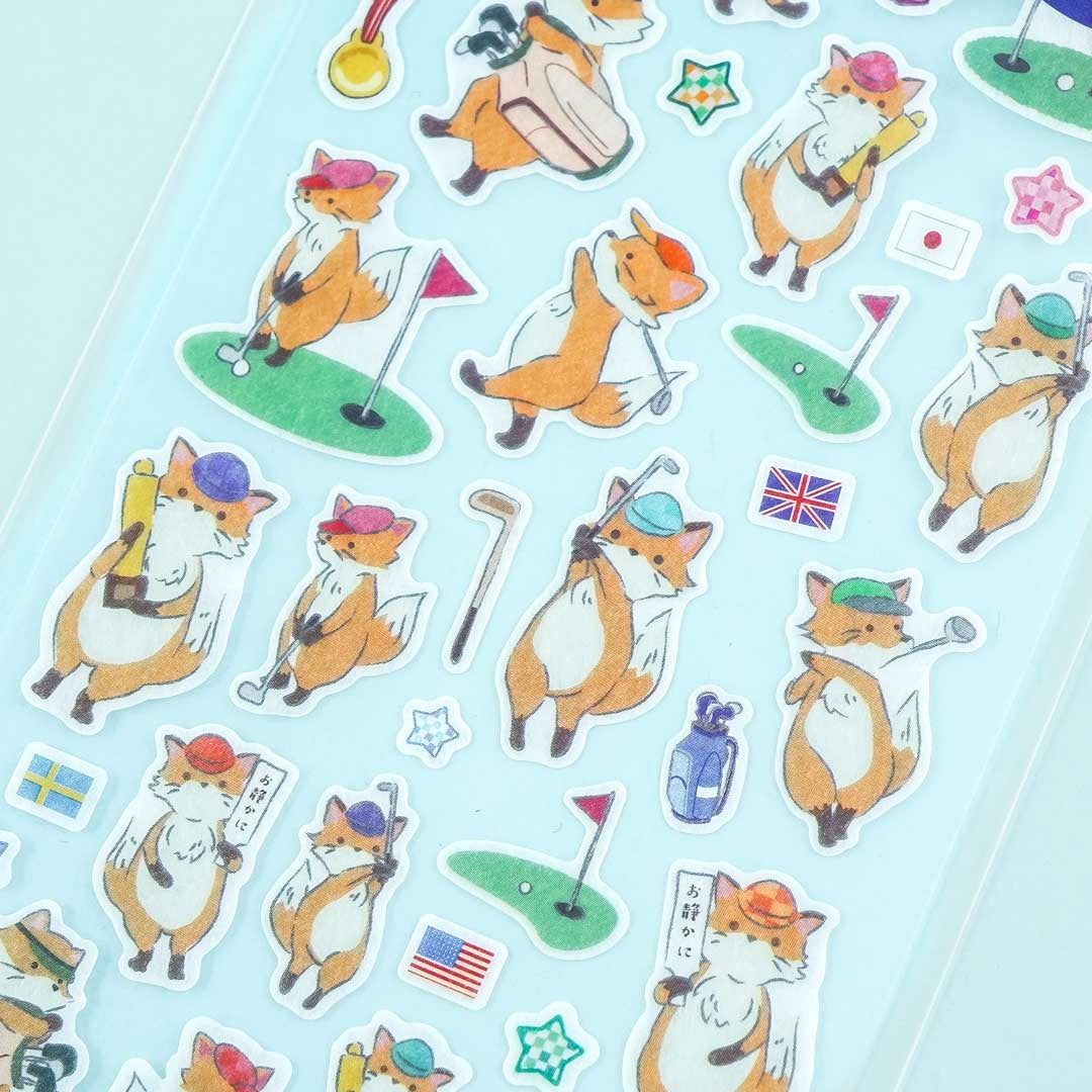 Have a blast jazzing up your planner using these die-cut stickers made of Japanese paper! This sheet features cute prints of foxes competing in a game of golf.