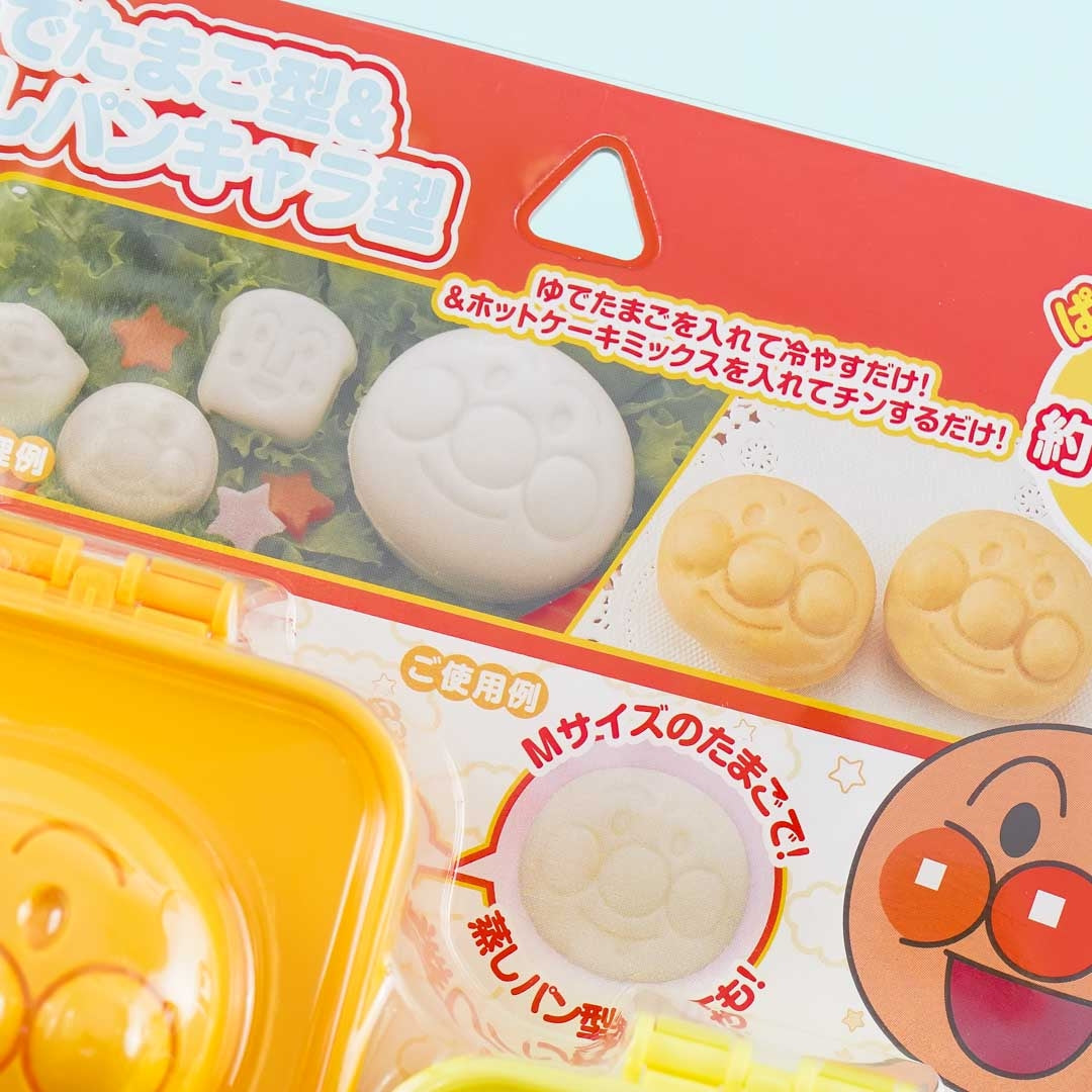 A kawaii set of boiled egg and bread molds featuring Anpanman characters