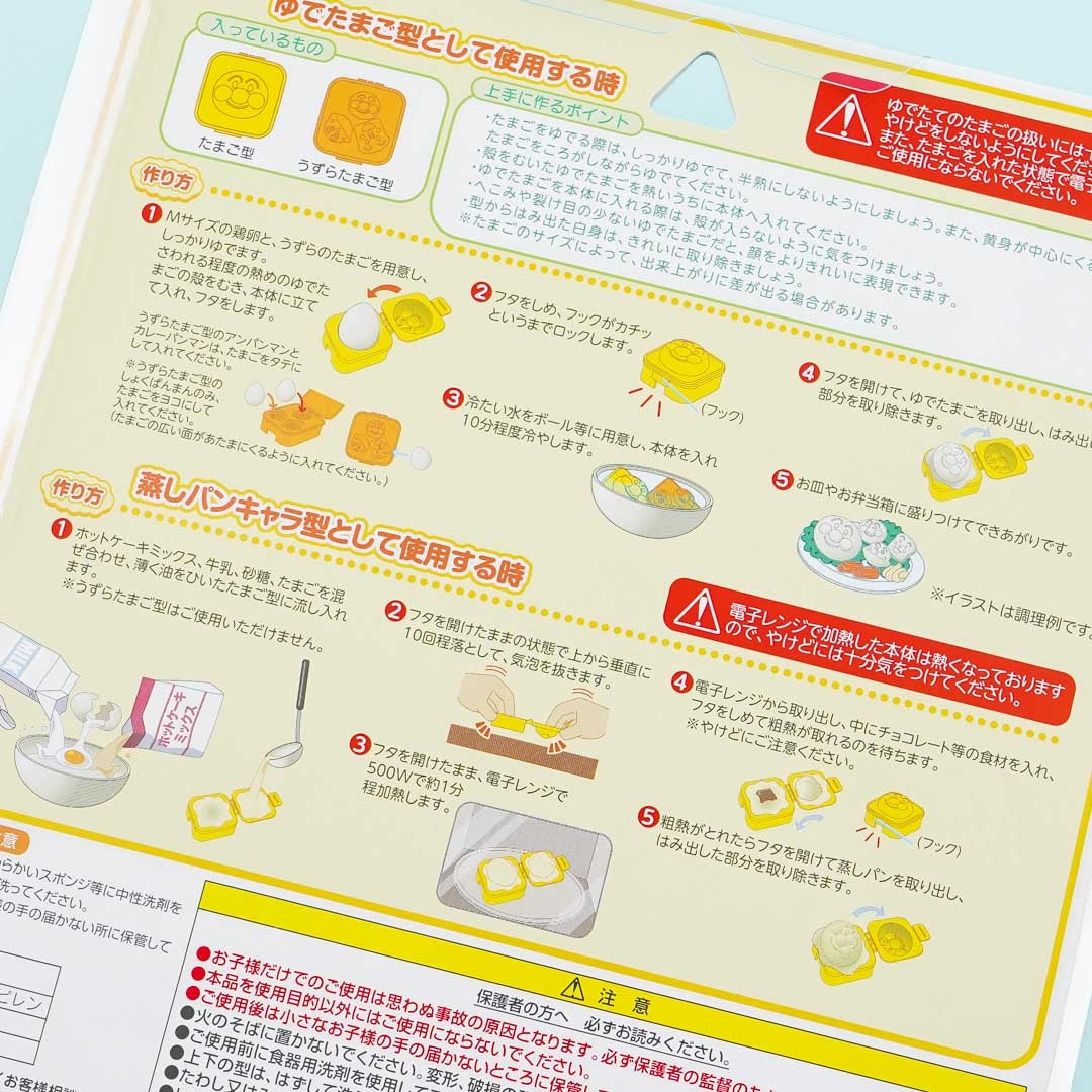 Have a blast creating cute boiled eggs and steamed bread using this kawaii deco set! It comes with two square molds with faces of Anpanman characters and is both made of durable plastic. Simply place the newly-boiled egg or bread batter and close the mold to form the shapes. The whole set is not meant for dishwasher and microwave use.