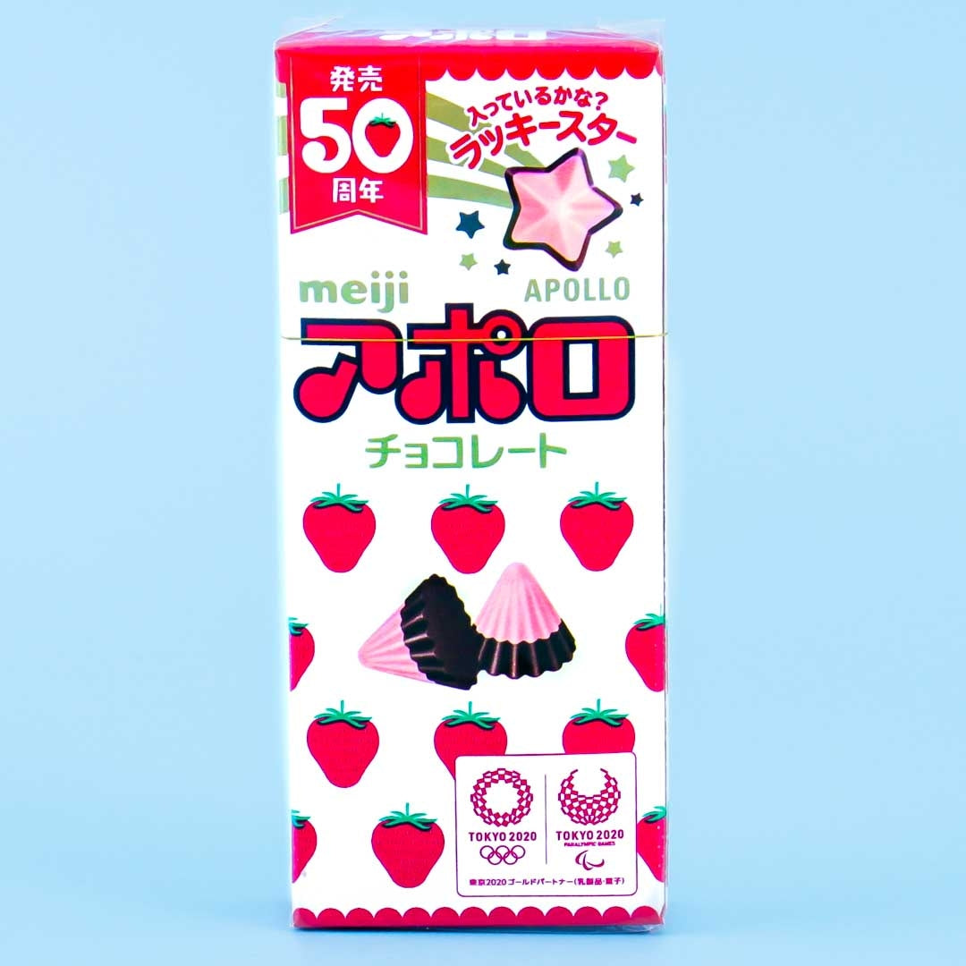 Apollo are the delicious and famous Mt fuji mountain shaped strawberry chocolates from Meiji. Each piece includes delicious Meiji milk chocolate topped with strawberry flavored white chocolate. This is a must try for every fan of Japanese sweets!