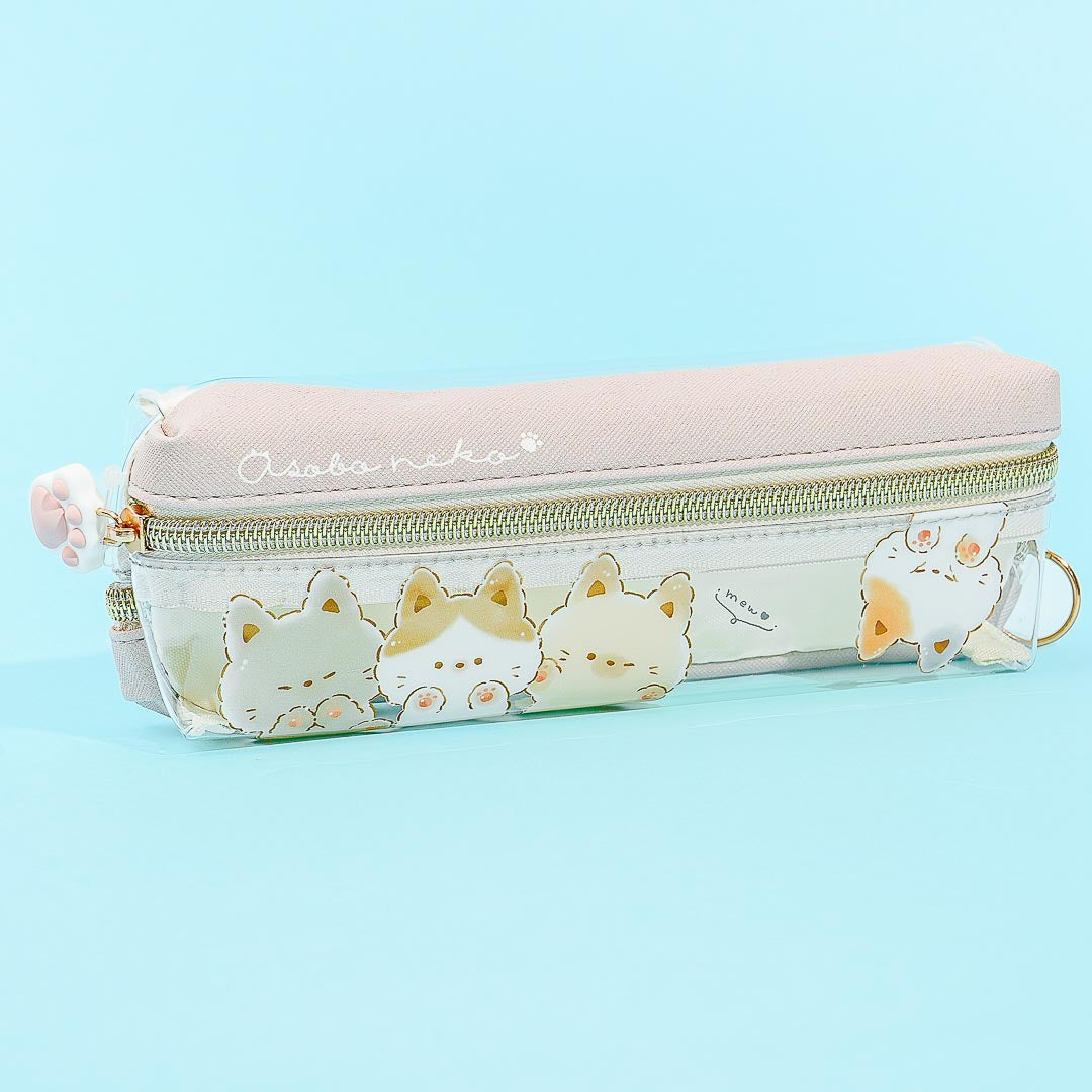 Organize your pens and other craft tools using this super cute case! It has two separate zippered compartments and is decorated with kawaii prints of Asobo Neko cat characters.