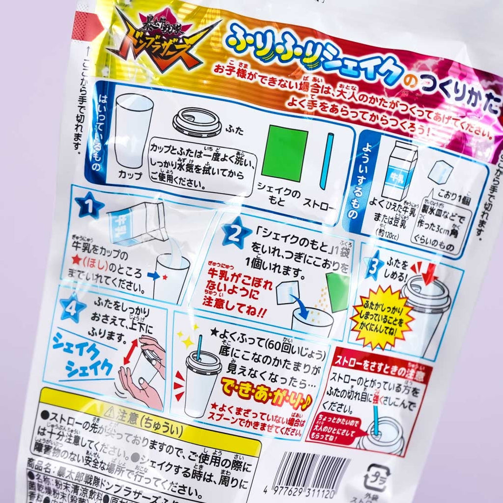 Have a blast as you create your own healthy milkshake from scratch! Simply add milk, ice, and the shake powder packet inside the provided character cup. Close the lid and have fun shaking it to make your own vanilla-flavored milkshake that’s fortified with beneficial lactic acid bacteria! The cup has prints featuring the forty-sixth installment of Toei Company’s Super Sentai Series, “Avataro Sentai Donbrothers.” You’ll get a random shake cup out of five possible designs when you order!