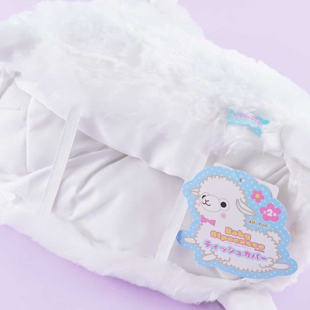 Use this fluffy baby alpaca plushie to keep your tissues. It has elastic bands at the bottom to securely hold your tissue box. This kiddie version of Shiro-chan comes from Amuse's Alpacasso kids series.