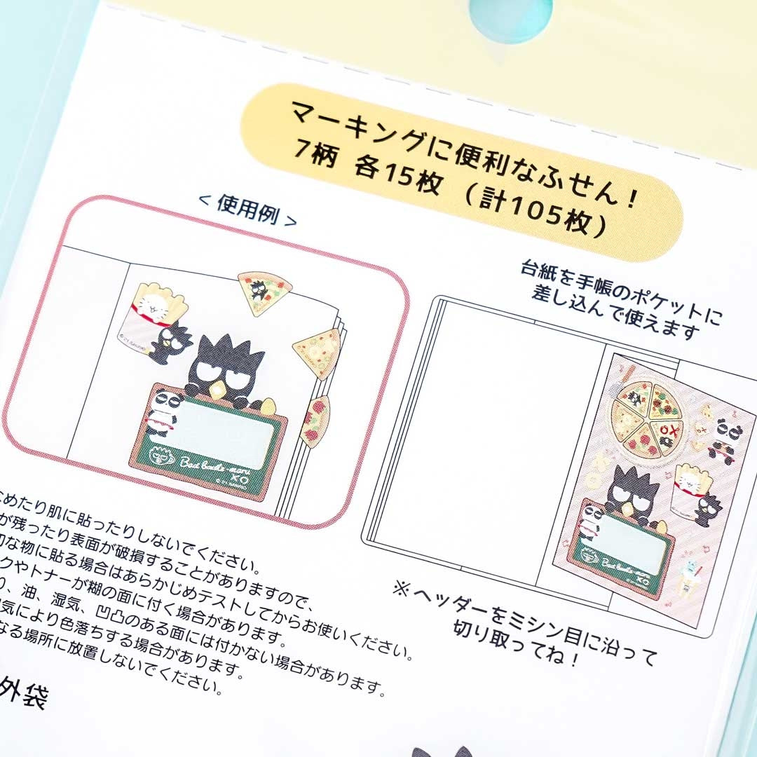 • A cute set of sticky note tabs with prints of Bad Badtz-Maru and his menu board, pizza, and fries