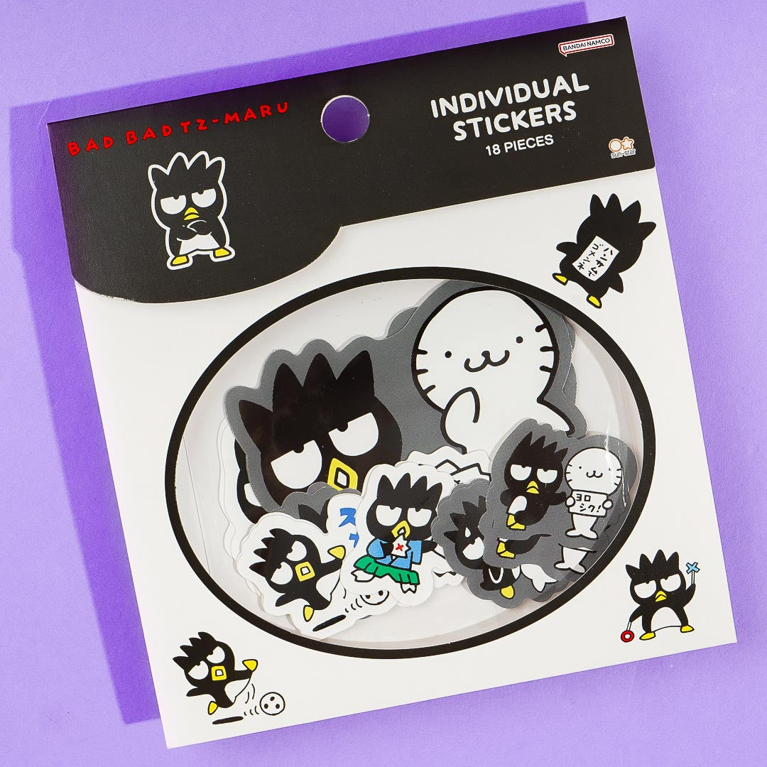 These kawaii die-cut sticker flakes are perfect for decorating photographs with your bestie! It features illustrations of Bad Badtz-Maru and Hana-Maru's old character design. This set comes from the second installment of the retro Sanrio characters series.